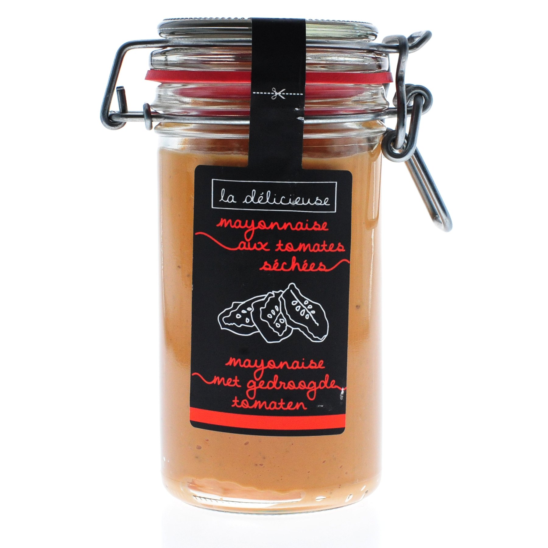 Mayonnaise with dried tomatoes, La Delicieuse. Ingredients: mayonnaise with dried tomatoes. Ingredients: Rapeseed oil, tomato puree, water, sugar, green olives, vinegar, 2.7 dried tomatoes, egg yolk powder, salt, aroma, acidity regulator: citric acid, antioxidant: EDTA, rosemary extract, green tea. Store in a dry and dark place. Keep cool after opening. Nutritional values per 100 g 100 ml: energy value: 599 kcal 2508 kJ, fat: 63 g, of which saturated fatty acids: 5.3 g, carbohydrates: 6.6 g, of which sugar: 6.4 g, proteins: 1.2 g, salt: 2 g INGREDIENTS Mayonnaise with dried tomatoes. Ingredients: rapeseed oil, tomato mark, water, sugar, green olives, vinegar, 2.7 dried tomatoes, egg yolk powder, salt, flavouring, acidulant: citric acid, antioxidant: EDTA, rosemary extract, green tea. Store in a dry and dark place. Keep cool after opening. INSTRUCTIONS FOR USE Contents: eggs. May contain traces of gluten-containing grains (wheat), milk, celeriac, mustard, soy beans. See moreLa Délicieuse super lekkere premium Delikatess-mayonaise uit een Belgisch familiebedrijf (gedroogde tomaten, 250 ml) Mayonaise met gedroogde tomaten, La Delicieuse. Ingrediënten: mayonaise met gedroogde tomaten. Ingrediënten: Koolzaadolie, tomatenpuree, water, suiker, groene olijven, azijn, 2,7 gedroogde tomaten, eigeelpoeder, zout, aroma, zuurteregelaar: citroenzuur, antioxidant: EDTA, rozemarijnextract, groene thee. Droog en donker bewaren. Na het openen koel bewaren. Voedingswaarden per 100 g 100 ml: energiewaarde: 599 kcal 2508 kJ, vet: 63 g, waarvan verzadigde vetzuren: 5,3 g, koolhydraten: 6,6 g, waarvan suiker: 6,4 g, eiwitten: 1,2 g, zout: 2 g INGREDIËNTEN Mayonnaise met gedroogde tomaten. Ingrediënten: koolzaadolie, tomatenmark, water, suiker, groene olijven, azijn, 2,7 gedroogde tomaten, eigeelpoeder, zout, aroma, zuurmiddel: citroenzuur, antioxidant: EDTA, rozemarijnextract, groene thee. Droog en donker bewaren. Na het openen koel bewaren. GEBRUIKSAANWIJZING Inhoud: eieren. Kan sporen bevatten van glutenhoudende granen (tarwe), melk, (knollen)selderij, mosterd, sojabonen. Meer bekijken