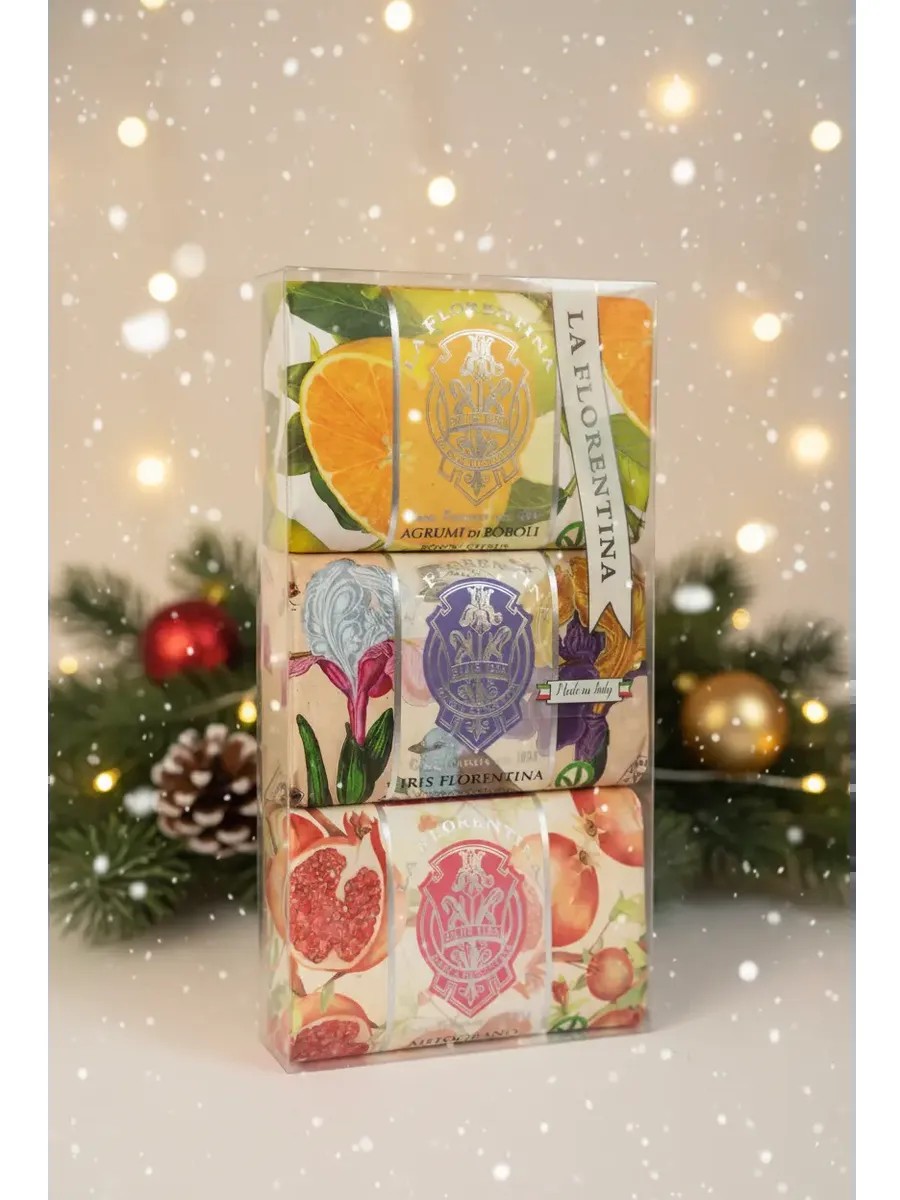 Роскошной набор подарочного парфюмерного мыла La Florentina - это душистый и красивый островок Италии и идеальный подарок для близких и любимых в виде мыла подарочного для женщин.Набор мыла является прекрасным подарком на новый год. Три ароматных Итальянских косметических мыла, упакованных во флорентийскую бумагу, кусочка мыла не оставят равнодушным решительно никого! Удобная, прозрачная упаковка подчеркивает красоту и изящество расписанных вручную бумажных оберток мыла, и позволяет красиво преподнести подарок. Поднимите себе настроение, порадуйте друзей, родных и коллег, а набор La Florentina вам в этом поможет. Подарочный набор мыла: La Florentina Citrus, Florentina Iris, Pomegranate / Цитрус, Флорентийский ирис, Гранат (3 шт x 200 г) с органическими экстрактами и маслом жожоба. Наше мыло туалетное для лица и тела. По составу наше мыло не уступает мылу ручной работы. La Florentina располагает лабораторией внутреннего анализа с новейшим оборудованием и квалифицированными специалистами для проведения: анализов, тестов стабильности, оценки безопасности, дерматологических испытаний, патч-тестов, офтальмологических тестов, проверки маркировки продукции в соответствии с CEE и FDA. Вы также по достоинству можете оценить нашу коллекцию жидкого мыла для рук, лица, и тела.Идеальное средство для полноценного ухода за кожей. Набор состоит из 3 шт мыла по 200 г. Наше мыло туалетное твердое предназначено для ухода за лицом, уход за руками и телом. La Florentina – это не просто мыло, это настоящая косметика для умывания лица и вашей кожи. Оно обладает тонким нейтральным запахом, который окутывает вас женственностью и свежестью. Доверьте свою кожу мыло . La Florentina твердое и ощутите настоящий уход. Наше мыло твердое косметическое – это забота о вашей красоте, комфорте и здоровье. Наше мыло для рук восстанавливает кожу рук после мытья посуды. Уход за вашим телом – это забота о вашей красоте.