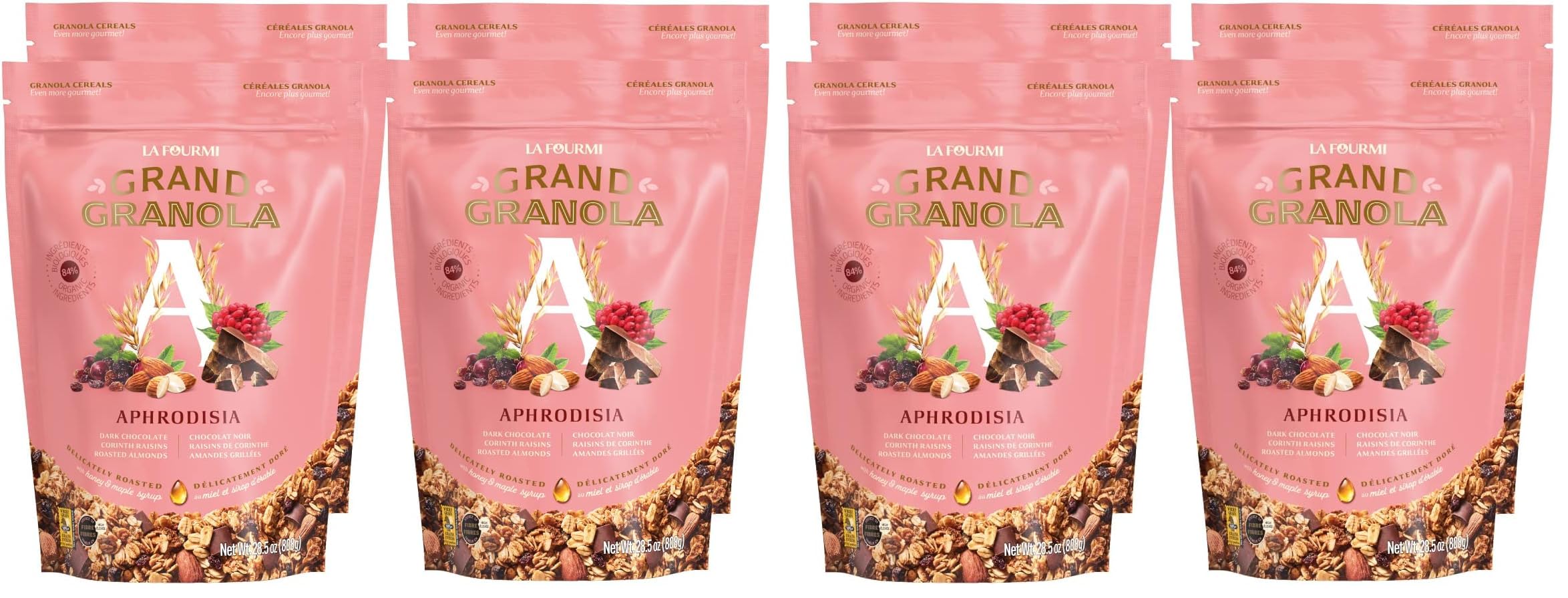 La Fourmi - Grand Granola Aphrodisia - Granola chocolat noir, raisins de corinthe, amandes grillées, flocons d'avoine - 84 d'ingrédients bio - naturel - granola bio (Lot de 2) Pack of 2