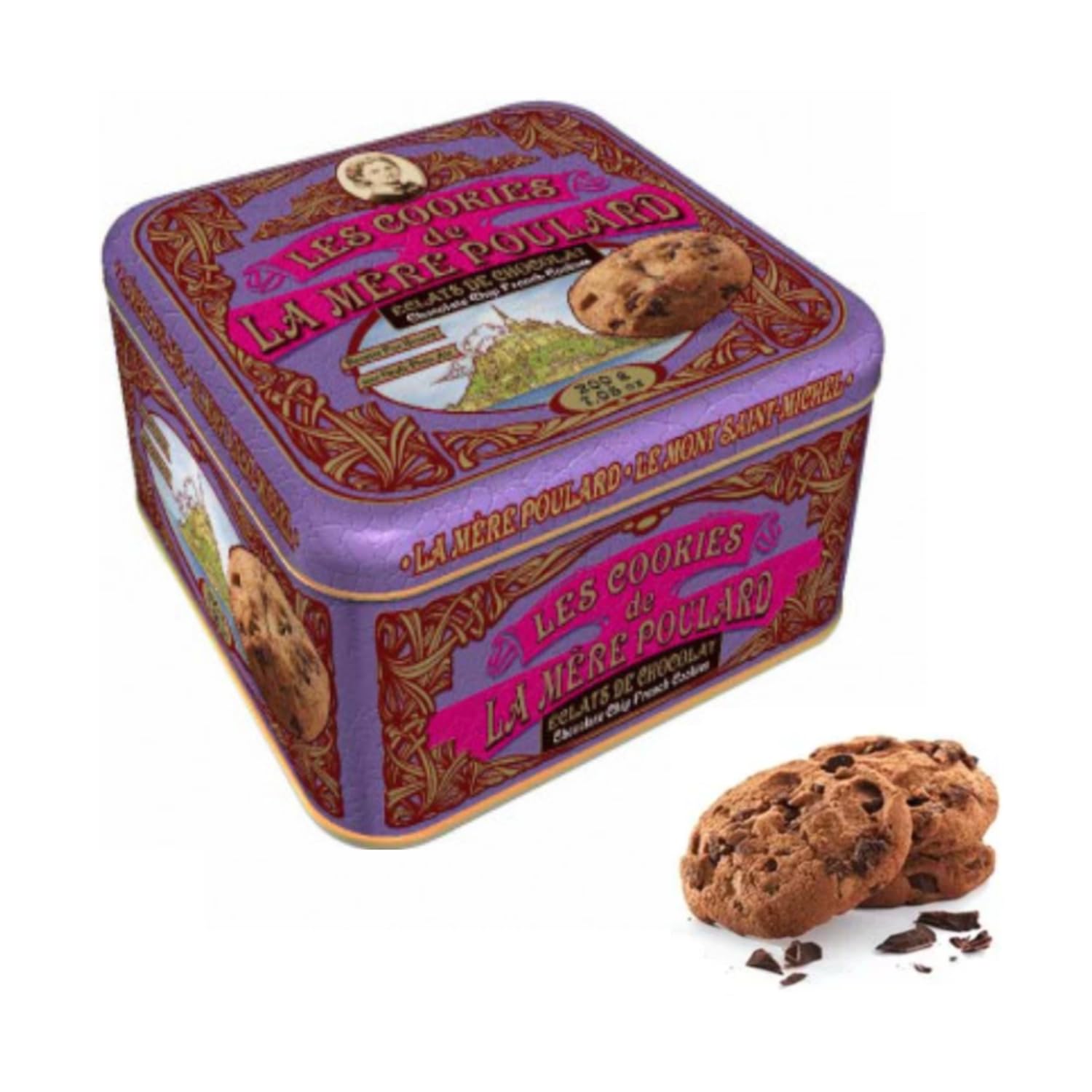 LA MERE POULARD In a market where brands compete with invention and modernization, the La Mère Poulard biscuit factory offers the taste of goodness with simple and genuine products that respect tradition: these recipes are traditional and authentic, and their packaging recalls the roots of the biscuit world. Today, as in 1888, La Mère Poulard offers you its delicious lucky biscuits, made with pure butter and free-range eggs, using the finest ingredients. Annette, the famous cook known as La Mère Poulard, created her delicious biscuits in 1888 for the opening of her inn at Mont Saint-Michel, a masterpiece of French heritage and a UNESCO World Heritage Site. She called her biscuits "My Lucky One" and offered them to children and pilgrims who wished for them. "Chocolate Chips": Pure butter salted cookies with chocolate chips in a purple-decorated metal tin (1 x 200 grams). Made in France. FRESH EGGS: Annette still makes her fortune cookies the old-fashioned way, with pure butter and fresh eggs, combined with the finest ingredients. MONTH SAINT-MICHEL: In 1888, Annette Poulard realized her dream of opening her small inn in the heart of the historic French medieval village. TALENT: Annette received the title of "Mère," a distinction recognizing her exceptional culinary skills and her contribution to preserving French culinary traditions. CERTIFICATIONS: The biscuit factory, located in Brittany, is certified to the highest IFS standard. All ingredients are free of preservatives and palm oil. DETAILS: The shipment includes one reusable, openable metal tin containing 200 grams of cookies, individually wrapped in bags. INGREDIENTS Dark chocolate pieces (minimum 50 cocoa solids) (sugar, cocoa mass, cocoa butter, fat-reduced cocoa powder, sunflower lecithin emulsifier, natural vanilla flavoring), wheat flour, raw sugar, butter (16 ), eggs (5 ), baking powder (diphosphates, sodium carbonate, wheat starch), salt, sunflower lecithin emulsifier, natural vanilla flavoring. Contains gluten, milk, and eggs.La Mère Poulard Biscuits Chocolat Beurre Salé Peut Biscuits Français Beurre Flocons de Chocolat au Beurre Sablés - 200 Gr Boîte cadeau pour biscuits avec décorations violettesDESCRIPTION DU PRODUIT DESCRIPTION DU PRODUIT LA MERE POULARD In un mercato dove i marchi competono con invenzione e modernizzazione, il biscottificio La Mère Poulard scommette il gusto del buono con prodotti semplici e genuini nel rispetto della tradizione: queste ricette sono tradizionali ed autentiche ed il loro packaging ricorda le radici del mondo dei biscuits. Aujourd'hui, comme en 1888, La Mère Poulard vous propose ses délicieux biscuits porte-bonheur, pur beurre et œufs plein air, confectionnés avec les meilleurs produits. Annette, célèbre cuisinière dite La Mère Poulard, crée ses délicieux biscuits en 1888 pour l'ouverture de son auberge au Mont Saint-Michel, chef-d'œuvre du patrimoine français et de l'UNESCO. Il appelle ses biscuits « Le mien porte bonheur » et les offre aux enfants et aux pèlerins qui le souhaitent. "Eclats de Chocolat" : biscuits pur beurre salé aux éclats de chocolat dans une boîte métallique aux décors violets (1 x 200 grammes). Fabriqué en France. ŒUFS FRAIS : Annette prépare toujours ses fortune cookies comme autrefois, avec du pur beurre et des œufs frais, alliés à la qualité des meilleurs ingrédients. MONT SAINT MICHEL : en 1888, Annette Poulard réalise le rêve d'ouvrir sa petite auberge au cœur du village médiéval français historique. TALENT : Annette a reçu le titre de "mère", une distinction qui reconnaissait ses grandes compétences en cuisine et a contribué au maintien des traditions culinaires françaises. CERTIFICATIONS : la biscuiterie située en Bretagne est certifiée au plus haut niveau IFS. Tous les ingrédients ne contiennent ni conservateurs ni huile de palme. DÉTAILS : l'envoi comprend 1 boîte métallique ouvrable et réutilisable contenant 200 grammes nets de biscuits à l'intérieur, emballés dans des sacs séparés. INGRÉDIENTS Fragments de chocolat noir minimum 50 de cacao (sucre, pâte de cacao, beurre de cacao, cacao maigre en poudre, émulsifiant lécithine de tournesol, arôme naturel de vanille), farine de blé, sucre brut, beurre 16 , œufs 5 , levure en poudre (diphosphates, carbonate de sodium, amidon de blé), sel, émulsifiant lécithine de tournesol, arôme naturel de vanille. Contient du gluten, du lait, des œufs.