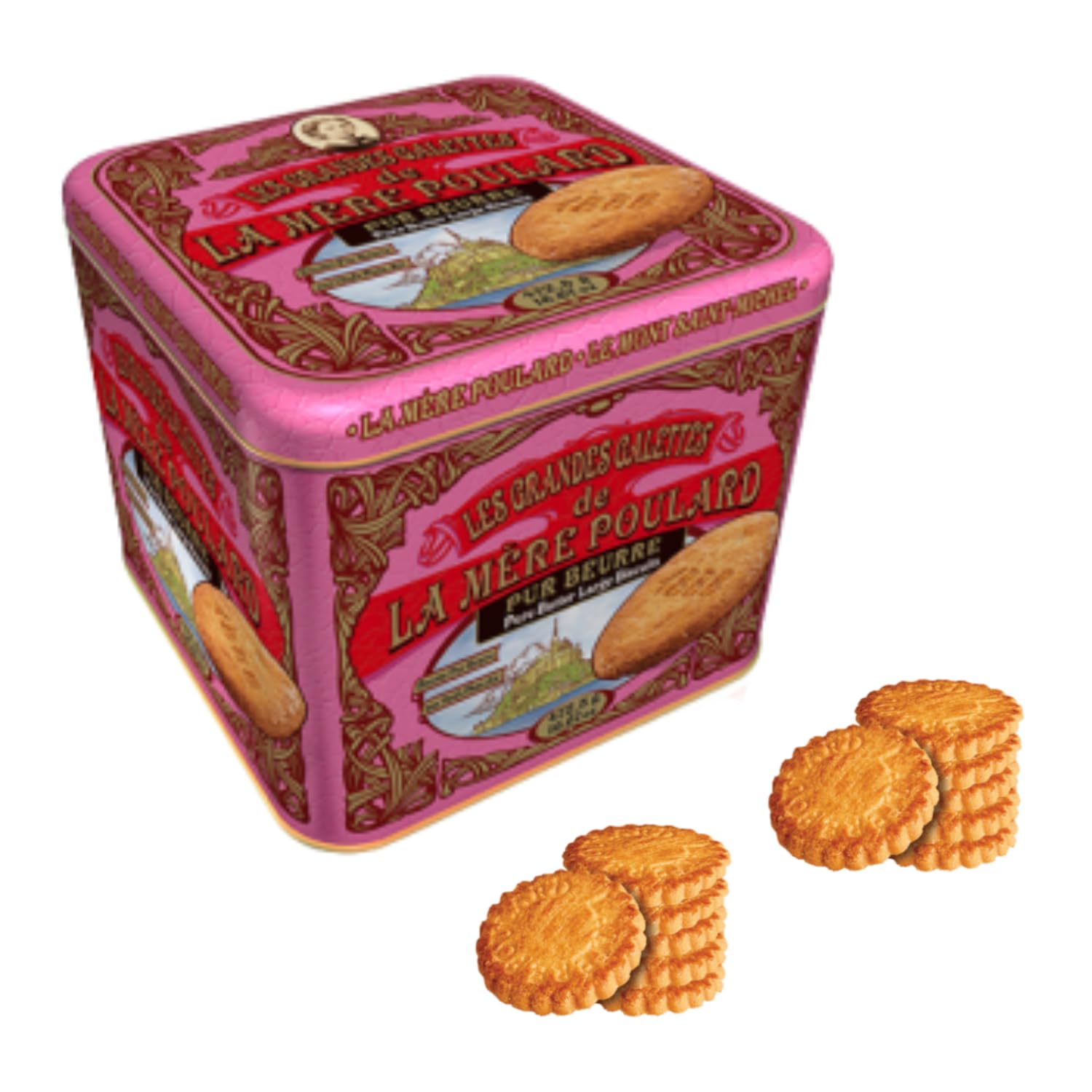 LA MERE POULARD In a market where brands compete with invention and modernization, the La Mère Poulard biscuit factory offers the taste of goodness with simple and genuine products that respect tradition: these recipes are traditional and authentic, and their packaging recalls the roots of the biscuit world. Today, as in 1888, La Mère Poulard offers you its delicious lucky biscuits, made with pure butter and free-range eggs, using the finest ingredients. Annette, the famous cook known as La Mère Poulard, created her delicious biscuits in 1888 for the opening of her inn at Mont Saint-Michel, a masterpiece of French heritage and a UNESCO World Heritage Site. She called her biscuits "My Lucky One" and offered them to children and pilgrims who wished for them. "Pure Butter": Salted butter shortbread cookies with caramel in a metal tin (1 x 472.5 grams). Made in France. FRESH EGGS: Annette still makes her fortune cookies the old-fashioned way, with pure butter and fresh eggs, combined with the finest ingredients. MONTH SAINT-MICHEL: In 1888, Annette Poulard realized her dream of opening her small inn in the heart of the historic French medieval village. TALENT: Annette received the title of "Mère," a distinction recognizing her exceptional culinary skills and her contribution to preserving French culinary traditions. CERTIFICATIONS: The biscuit factory, located in Brittany, is certified to the highest IFS standard. All ingredients are free of preservatives and palm oil. DETAILS: The shipment includes one reusable, openable metal tin containing 472.5 grams of cookies, individually wrapped in bags. INGREDIENTS WHEAT flour (France), butter (milk) 24 , sugar, whole milk powder, eggs 1.6 , egg yolks powder 0.8 , salt, natural vanilla flavoring, caramel (glucose syrup, water, sugar). Contains GLUTEN, MILK, EGGS. May contain traces of SOY, SESAME, and NUTS.La Mere Poulard 1888 Biscuits Pur Beurre Salé et Caramel Boîte de biscuits au beurre français Sablés Beurre et Caramel - 472.5 Gr Boîtes de biscuits cadeauxDESCRIPTION DU PRODUIT DESCRIPTION DU PRODUIT LA MERE POULARD In un mercato dove i marchi competono con invenzione e modernizzazione, il biscottificio La Mère Poulard scommette il gusto del buono con prodotti semplici e genuini nel rispetto della tradizione: queste ricette sono tradizionali ed autentiche ed il loro packaging ricorda le radici del mondo dei biscuits. Aujourd'hui, comme en 1888, La Mère Poulard vous propose ses délicieux biscuits porte-bonheur, pur beurre et œufs plein air, confectionnés avec les meilleurs produits. Annette, célèbre cuisinière dite La Mère Poulard, crée ses délicieux biscuits en 1888 pour l'ouverture de son auberge au Mont Saint-Michel, chef-d'œuvre du patrimoine français et de l'UNESCO. Il appelle ses biscuits « Le mien porte bonheur » et les offre aux enfants et aux pèlerins qui le souhaitent. "Pur Beurre" : biscuits sablés pur beurre salé et caramel en boîte métal (1 x 472.5 grammes). Fabriqué en France. ŒUFS FRAIS : Annette prépare toujours ses fortune cookies comme autrefois, avec du pur beurre et des œufs frais, alliés à la qualité des meilleurs ingrédients. MONT SAINT MICHEL : en 1888, Annette Poulard réalise le rêve d'ouvrir sa petite auberge au cœur du village médiéval français historique. TALENT : Annette a reçu le titre de "mère", une distinction qui reconnaissait ses grandes compétences en cuisine et a contribué au maintien des traditions culinaires françaises. CERTIFICATIONS : la biscuiterie située en Bretagne est certifiée au plus haut niveau IFS. Tous les ingrédients ne contiennent ni conservateurs ni huile de palme. DÉTAILS : l'envoi comprend 1 boîte métallique ouvrable et réutilisable contenant 472,5 grammes nets de biscuits à l'intérieur, emballés dans des sacs séparés. INGRÉDIENTS Farine de BLÉ (France), beurre ( lait ) 24 , sucre, lait entier en poudre, œufs 1,6 , jaunes d'œufs en poudre 0,8 , sel, arôme naturel de vanille, caramel (sirop de glucose, eau sucre). Contient GLUTEN , LAIT , OEUFS . Peut contenir des traces de SOJA , SÉSAME et FRUITS À COQUE .