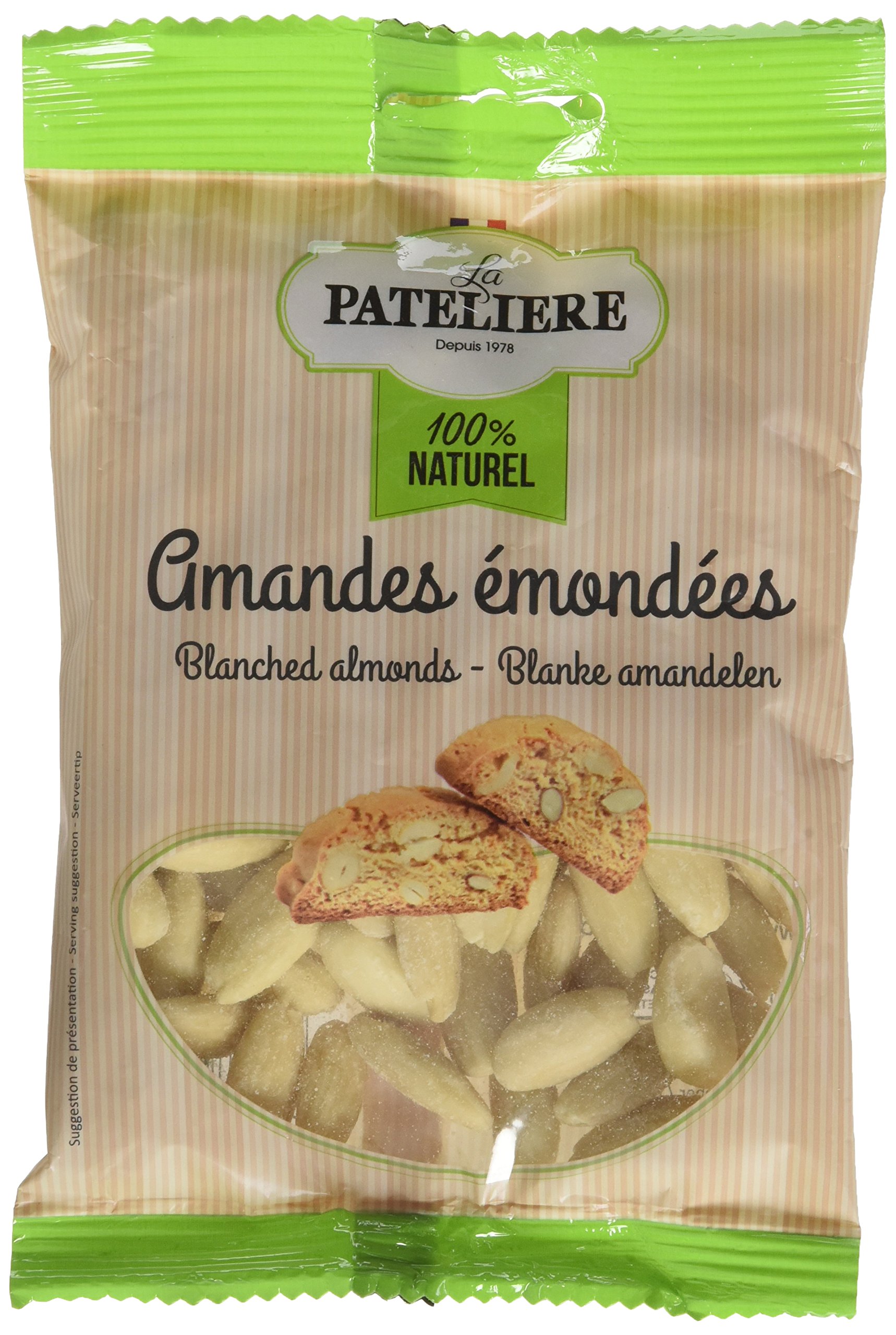 Blanched almonds 125g LA PATELIERE 100 natural. These whole blanched almonds are perfect for making pastries: cakes, tarts, muffins, crunchy pastries, frangipane, galette des Rois or even for savory dishes such as tagines, curries. INGREDIENTS Almonds INSTRUCTIONS FOR USE Use blanched almonds to make biscuits, almond cakes, or nougat. They can also be used in savory recipes such as tagines, tarts or salads. SAFETY WARNING No specific risk Dried Fruits - 125g. Baking and dessert aid. 100 natural. Amandes émondées 125g LA PATELIERE 100 naturel. Ces amandes entières émondées conviennent parfaitement pour la réalisation des pâtisseries : gâteaux, tartes, muffins, croquants, frangipane, galette des Rois ou même pour les plats salés comme les tajines, les currys. INGRÉDIENTS Amandes MODE D'EMPLOI Utiliser les amandes émondées pour faire des biscuits, gâteaux aux amandes, ou du nougat. Elles peuvent aussi servir dans des recettes salées commes des tajines, des tartes ou des salades. AVERTISSEMENT DE SÛRETÉ Pas de risque spécifique Fruits secs - 125g. Aide à la pâtisserie et aux desserts. 100 naturel.