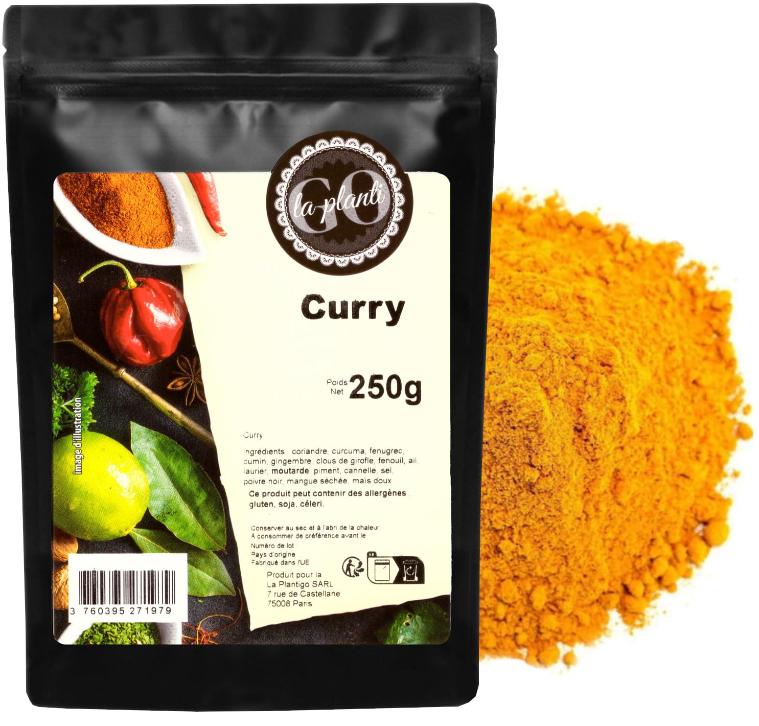 Ingredients: Curry (100 ) Allergen Information: This product may contain the following allergens: gluten, soy, mustard, celery. Packaging Method: The product is packaged in thick, doypack-style pouches. The packaging has a heat-sealed drawstring closure, allowing for easy opening and resealing multiple times. Thanks to this simple technology, the product retains its freshness. Its organoleptic properties remain unchanged throughout its shelf life. Thanks to high sales volumes and our stock turnover, LA PLANTIGO products are always fresh, which encourages bulk purchases and stocking up on food in the home pantry. INGREDIENTS Curry (100 )