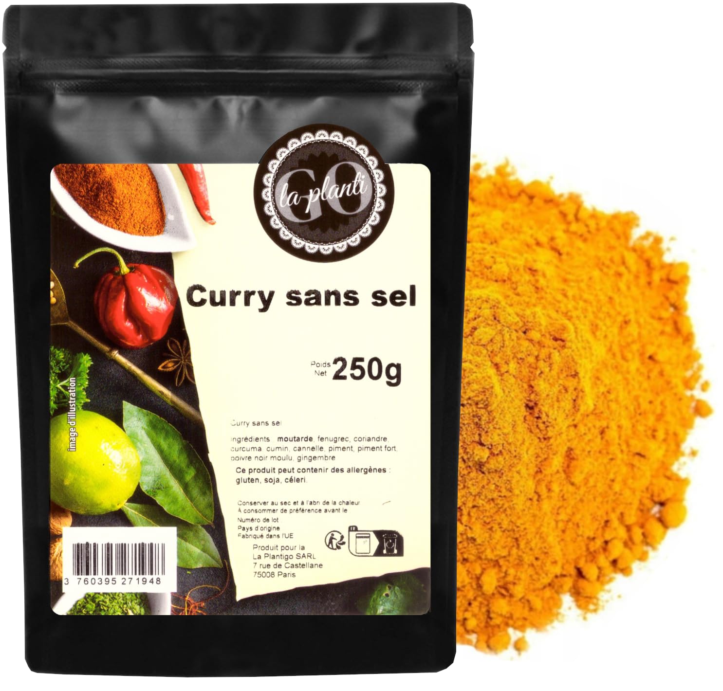Ingredients: Curry (100 ) Allergen Information: This product may contain the following allergens: gluten, soy, mustard, celery. Packaging Method: The product is packaged in thick, doypack-style pouches. The packaging has a heat-sealed drawstring closure, allowing for easy opening and resealing multiple times. Thanks to this simple technology, the product retains its freshness. Its organoleptic properties remain unchanged throughout its shelf life. Thanks to high sales volumes and our stock turnover, LA PLANTIGO products are always fresh, which encourages bulk purchases and stocking up on food in the home pantry. INGREDIENTS Curry (100 )