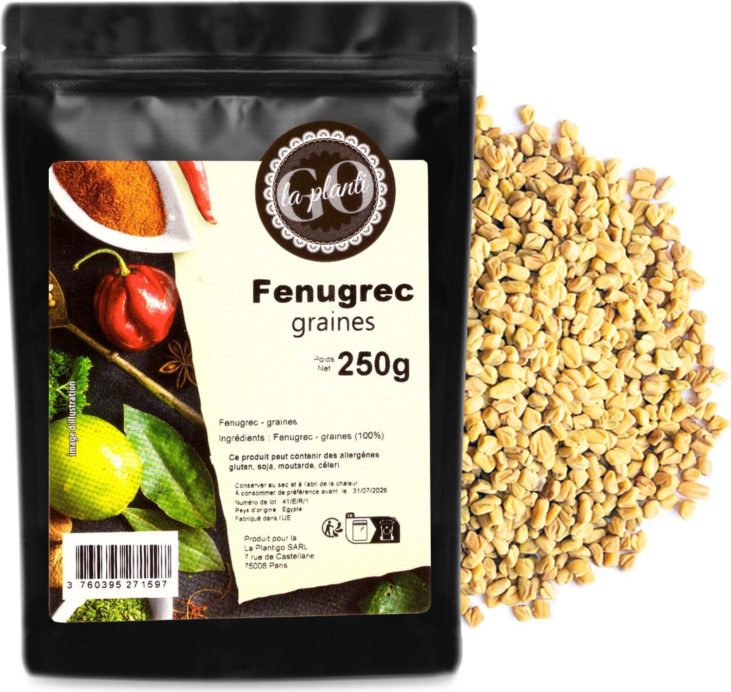 Ingredients: Fenugreek seeds (100 ) Allergen Information: This product may contain the following allergens: gluten, soy, mustard, celery. Packaging Method: The product is packaged in thick, doypack-style pouches. The packaging has a heat-sealed drawstring closure, allowing for easy opening and resealing multiple times. Thanks to this simple technology, the product retains its freshness. Its organoleptic properties remain unchanged throughout its shelf life. Thanks to high sales volumes and our stock turnover, LA PLANTIGO products are always fresh, making them ideal for bulk purchases and stocking up on food in your home pantry.