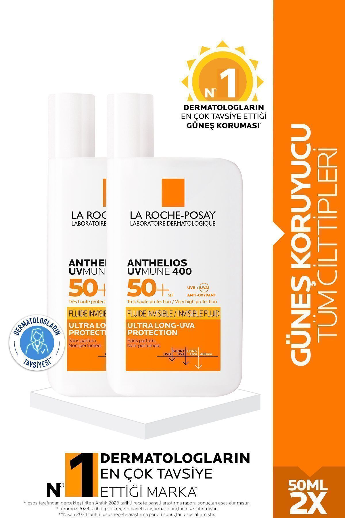 La Roche Posay All Skin Types Facial Skin Care Set: Antehlios Uvmune Fluid Sun Cream SPF50+ 50ML X2