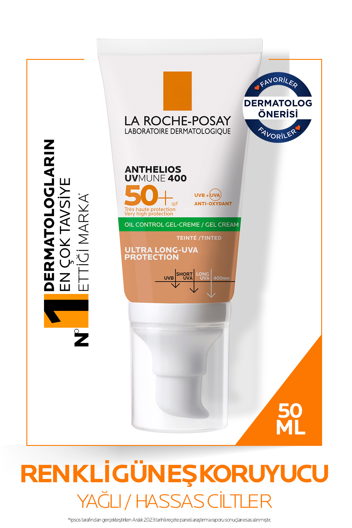 La Roche Posay ANTHEL OS GEL CREAM SPF50+COLORED FACIAL SUNSCREEN O LY-COMB NAT ON SK N 50ml PSSN1680