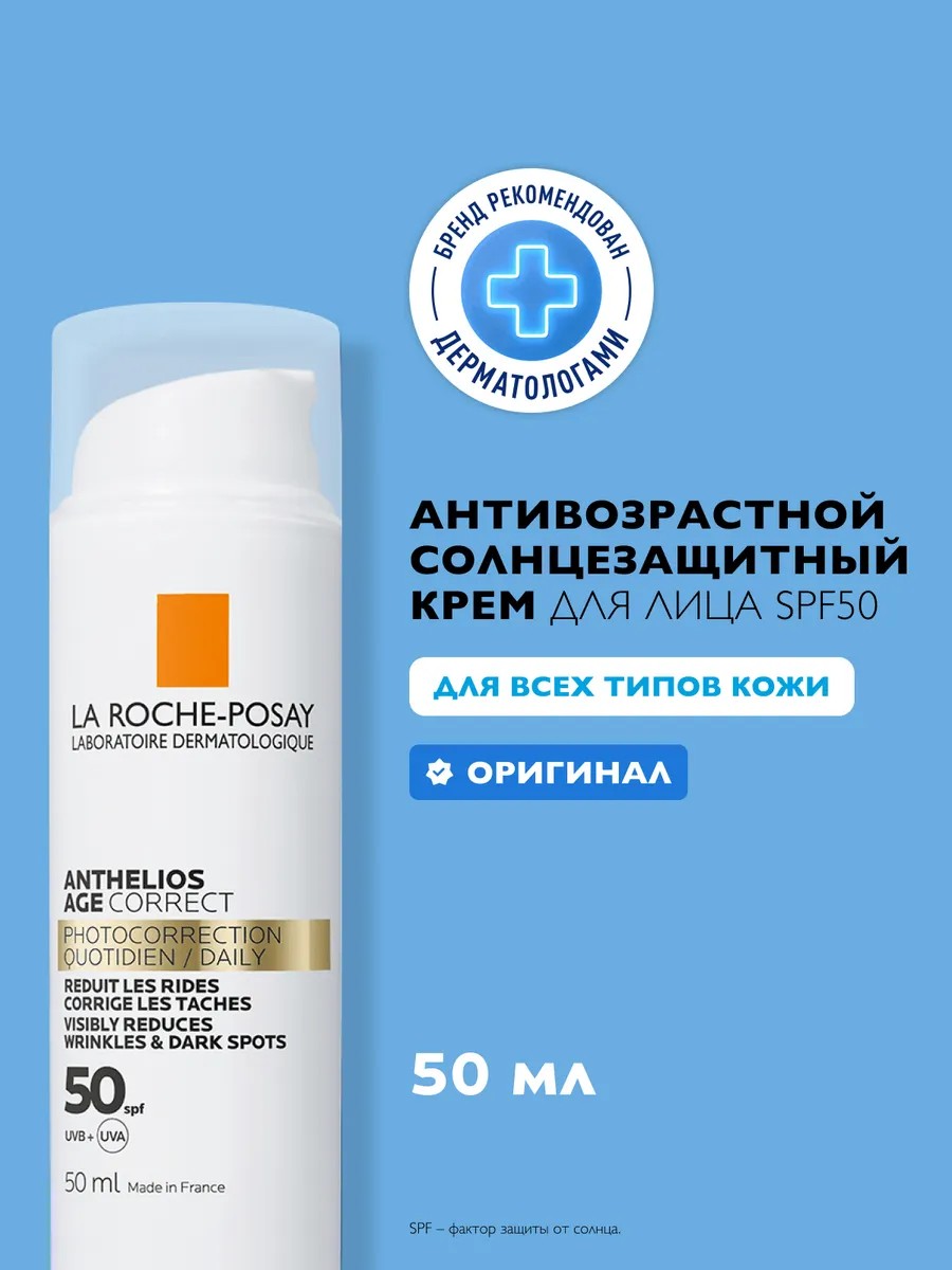 Солнцезащитный антивозрастной крем для лица Anthelios SPF 50 / PPD 19 предотвращает и корректирует признаки преждевременного старения кожи, вызванные ежедневным воздействием ультрафиолета. Активные ингредиенты: технология Cellox-B3 Techна основе фотозащитных фильтров Mexoryl XL и антиоксидантов обеспечивает надежную защиту от солнечных UVA/UVB-лучей. Низкомолекулярная гиалуроновая кислота интенсивно увлажняет, способствует сокращению, разглаживанию морщин. Витамин B3 (ниацинамид, никотиновая кислота) оказывает успокаивающее действие. Термальная вода и витамин E (токоферол) обладают антиоксидантными и защитными свойствами. Способ применения: наносите каждое утро после очищения, тонизации и основного ухода на лицо, включая зону вокруг глаз, а также шею и зону декольте. Если необходим макияж, наносите его поверх солнцезащитного средства. Эффективность: эффективность доказана клинически, после 8 недель применения: морщины сокращаются на 22%, пигментные пятна уменьшаются на 29%, эластичность кожи повышается на 15%. Солнцезащитный антивозрастной крем Anthelios SPF 50 обеспечивает высокую степень защиты от UV-лучей. Предотвращает и корректирует возрастные изменения, вызванные воздействием солнца. Поддерживает 24 часа увлажнения, выравнивает цвет лица, обеспечивает корректирующее и омолаживающее действие. Легкая, нелипкая текстура быстро впитывается, не оставляя жирных следов. Может использоваться в качестве базы под макияж. Подходит для всех типов кожи, включая чувствительную. Гипоаллергенно. Некомедогенно. Протестировано под контролем дерматологов и офтальмологов. Может использоваться в качестве подарка девушке; парню; брату; подруге; другу; жене; мужу; коллеге; маме; папе на 23 февраля; 8 марта; Новый год (НГ) или день рождения.