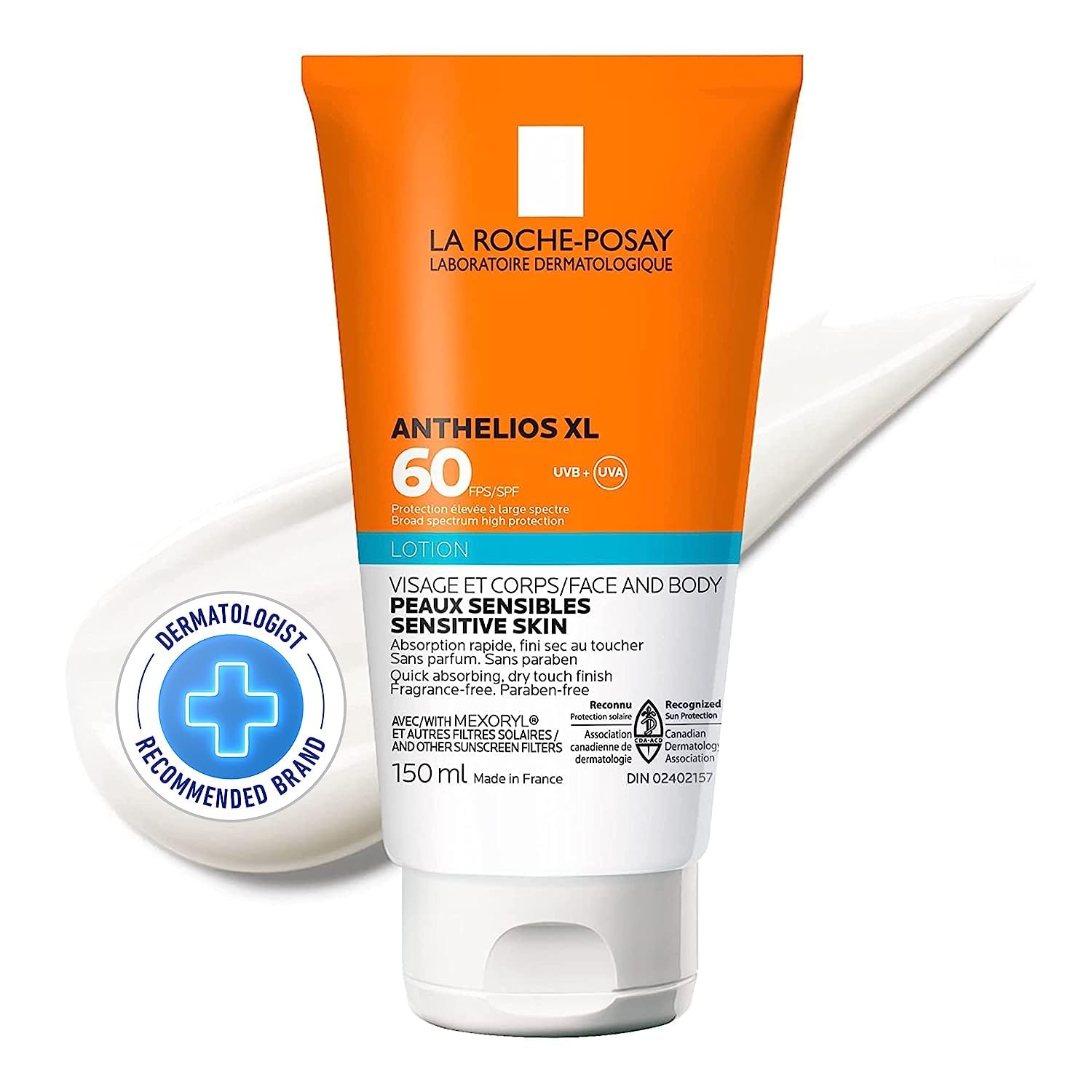La Roche-Posay Body Sunscreen Anthelios Sunscreen Broad Spectrum UVA & UVB Sun Protection Fragrance-Free Non-Comedogenic Non Greasy Hypoallergenic Travel Sunscreen Dermatologist Recommended DRY TOUCH SPF 60
