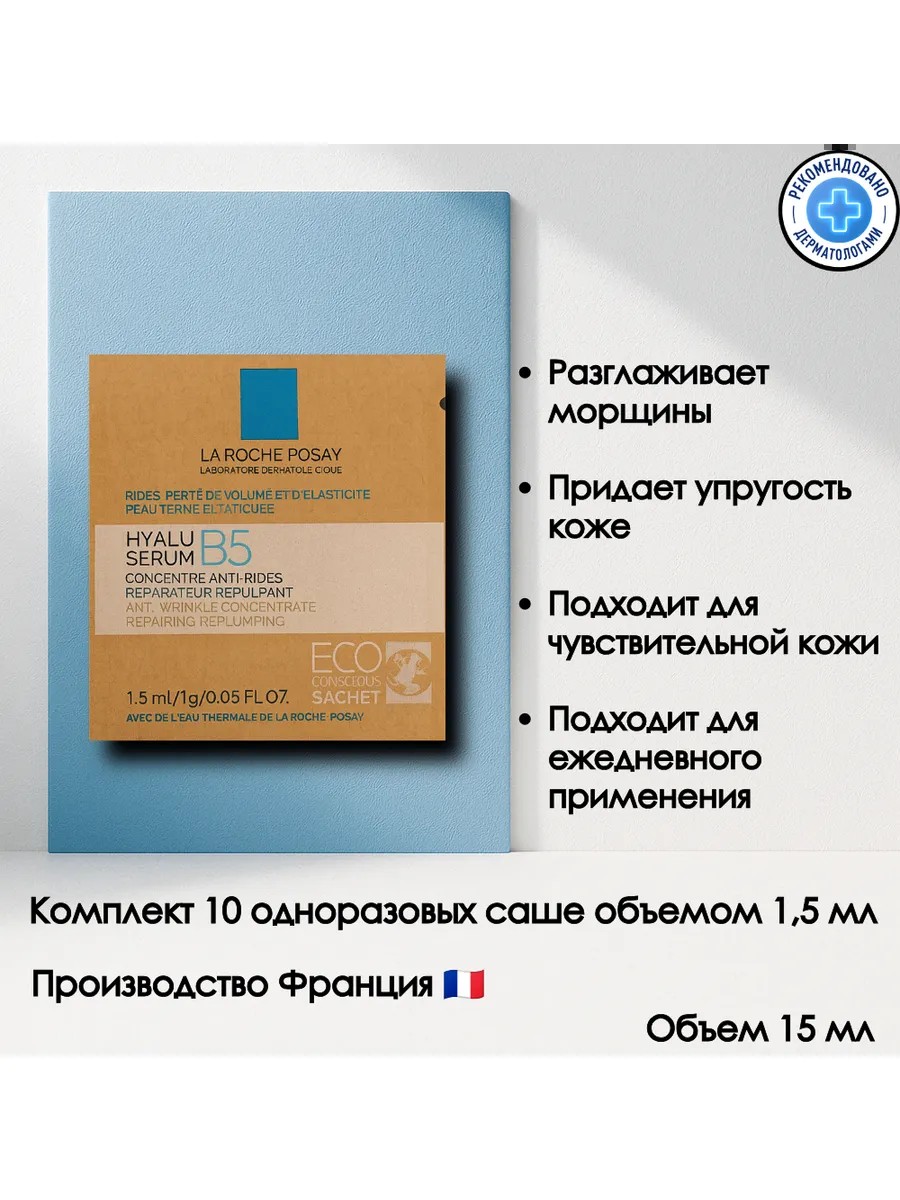 | Полное наименование товара | La Roshe-Posay HYALU B5 Увлажняющая концентрированная сыворотка против морщин. 10 одноразовых саше, объем 15мл |