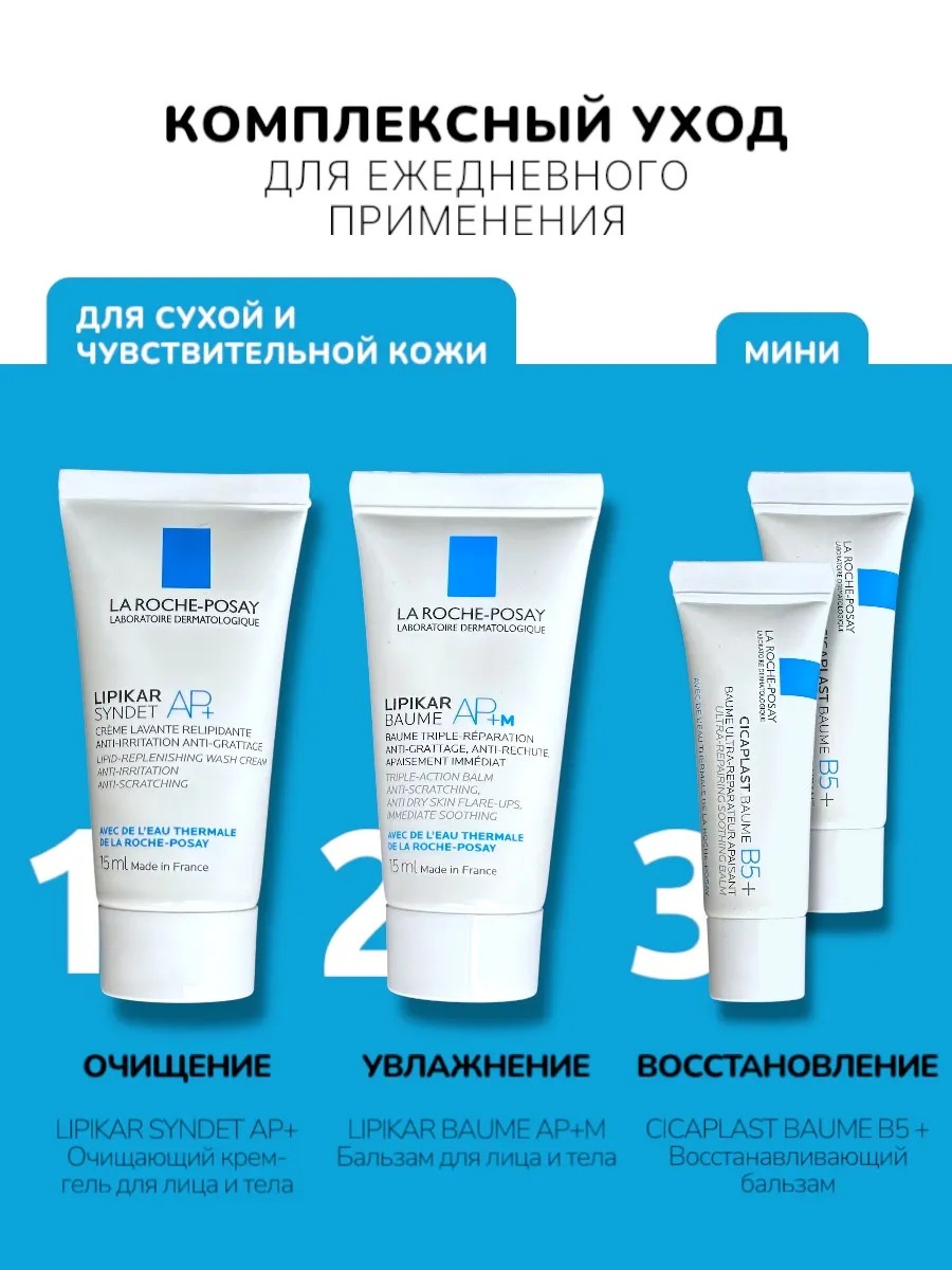 Набор миниатюр La Roche-Posay Lipikar — это комплексное решение для бережного очищения, интенсивного увлажнения и восстановления чувствительной и сухой кожи. В набор входят три средства в удобном формате: