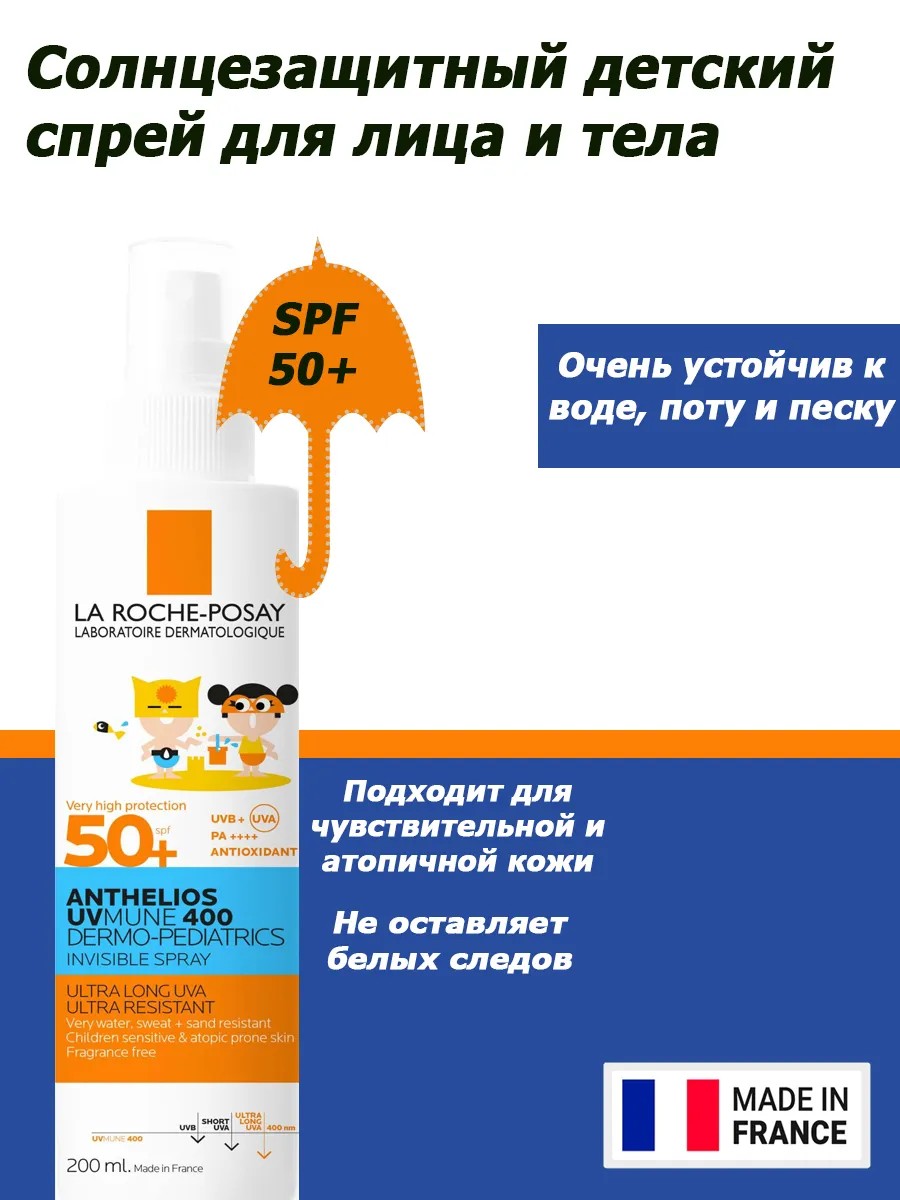 Лето — это время радости, игр на свежем воздухе и, конечно, солнца. Однако, для нежной кожи детей важно обеспечить надежную защиту от вредного воздействия солнечных лучей. Солнцезащитное средство от Ля Рош Позе Антгелиос SPF50+ — идеальный выбор для заботливых родителей, стремящихся защитить своих детей.С уникальной формулой, разработанной специально для чувствительной кожи, это средство предлагает очень высокую степень защиты от UVA- и UVB-лучей. Оно подходит даже для кожи, склонной к атопии, что делает его безопасным и эффективным для малышей с 3 лет. Инновационный УФ-фильтр Mexoryl 400 обеспечивает защиту от ультрадлинных UVA-лучей, которые являются особенно опасными, так как повреждают кожу на глубоком клеточном уровне.Солнцезащитное средство La Roche Posay UVMUNE 400 SPF50+ не только защищает, но и обладает уникальной технологией Netlock, которая делает его устойчивым к воздействию воды, пота и песка. Это значит, что ваши дети могут беззаботно играть на пляже, не беспокоясь о необходимости частого повторного нанесения. Легкая и невидимая текстура средства не оставляет белых следов, а гипоаллергенная формула гарантирует безопасность для чувствительной кожи.Продукт прошел дерматологическое и педиатрическое тестирование, что подтверждает его высокое качество и безопасность. Без отдушек и агрессивных компонентов, это средство идеально подходит для защиты даже самой чувствительной кожи. Просто встряхните перед использованием, нанесите на ладони и равномерно распределите по коже лица и тела. Не забывайте обильное и частое повторное нанесение, особенно после купания или вытирания.Выбирая Ля Рош Позе Антгелиос, вы выбираете французскую аптечную косметику, которая заботится о здоровье и безопасности ваших детей. Защитите их кожу от солнца и позвольте им наслаждаться каждым моментом лета с уверенностью в своей безопасности. Не упустите возможность подарить своим детям радость летних приключений, защищая их нежную кожу с помощью надежного солнцезащитного средства.
