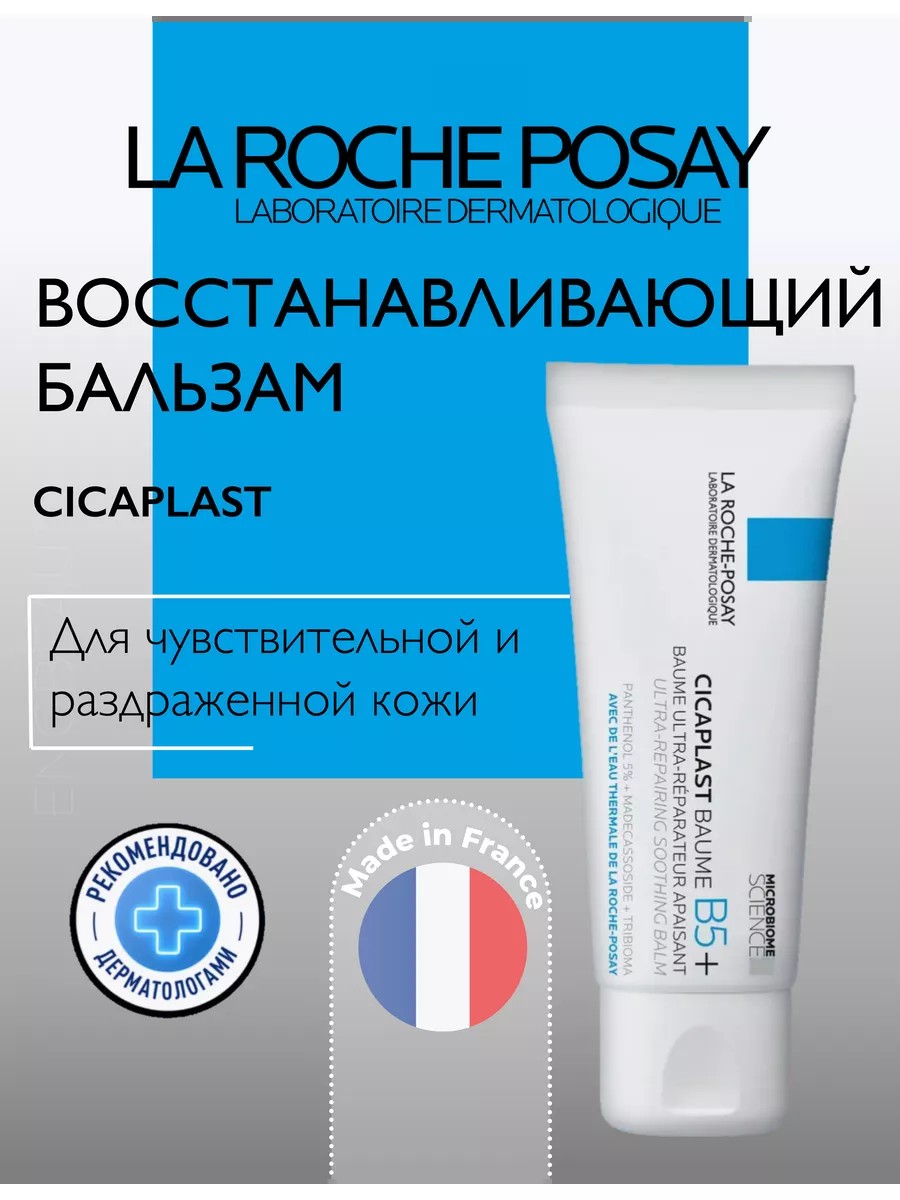 Восстанавливающий бальзам Cicaplast Baume B5+ специально разработанная лечебная косметика, обладающая антибактериальным, ранозаживляющими и успокаивающими свойствами, предназначен для чувствительной, раздраженной кожи лица, тела взрослых, детей и младенцев. Основой продукции является термальная вода, обогащённая природными активными микроэлементом селеном, который оказывает терапевтическое влияние и инновационный комплекс пребиотиков Трибиома, который регулирует микробиом кожи. В состав питательного заживляющего крем геля входит Пантенол (провитамин B5), оказывающий увлажняющее и противовоспалительное действие, предотвращает обезвоженность, ощущения стянутости и шелушения, снимает покраснения и раздражение. Мадекассосид (экстракт листьев центеллы азиатской) способствует повышению тонуса, упругости, эластичности кожи и синтезу коллагена. Антибактериальную защиту осуществляют «Марганец + Цинк», в совокупности стимулирующие процессы клеточного обновления. Гипоаллергенное, укрепляющее средство защищает от проникновения бактерий в поврежденную кожу, успокаивает раздраженные и сухие участки, устраняет жжение, может наноситься при ссадинах, шрамах, трещинах, потрескавшихся губах, солнечных ожогах легкой степени, не содержит сульфатов, отдушек, парабенов, некомедогенен.