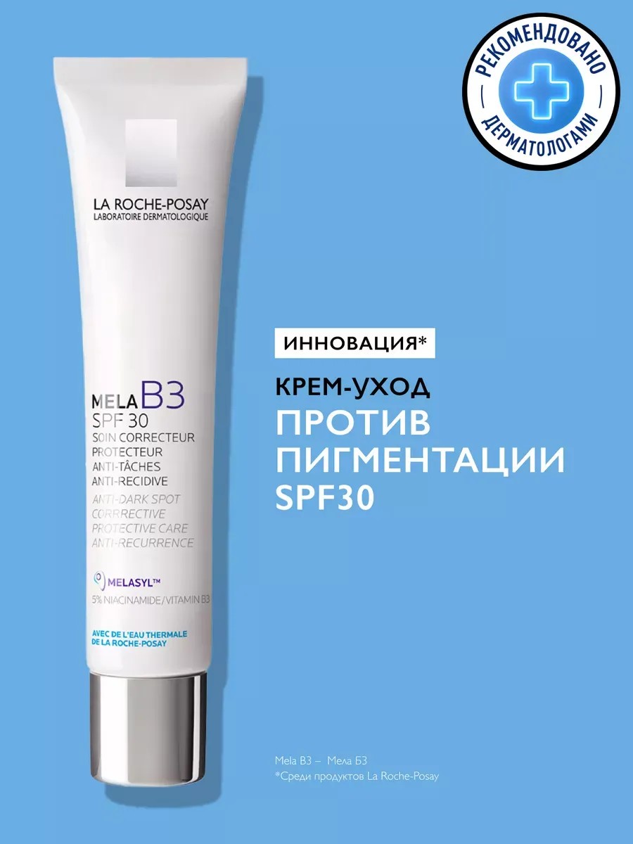 Mela B3 крем-уход против пигментации SPF 30 борется со всеми видами пигментных пятен и предотвращает их повторное появление. АКТИВНЫЕ ИНГРЕДИЕНТЫ: инновация* Меласил – инновационный компонент в борьбе против пигментации, запатентованный после 18 лет исследований. Он блокирует избыток меланина еще до того, как пигментация может проявиться на коже. Эффективность подтверждена клиническими исследованиями. Витамин B3 (ниацинамид) для коррекции даже самых стойких пигментных пятен. СПОСОБ ПРИМЕНЕНИЯ: наносите утром на лицо, шею и зону декольте. Избегайте попадания в глаза. Может быть использовано на коже рук. Подходит для всех типов кожи, в том числе для чувствительной и жирной. Для комплексного ухода дополните сывороткой Mela B3. ЭФФЕКТИВНОСТЬ: Через 1 неделю** тон кожи заметно более ровный. Через 2 недели** количество и интенсивность пигментных пятен значительно уменьшены. Через 1 месяц*** применения даже стойкие пигментные пятна заметно уменьшены. Препятствует повторному появлению пигментации. * Среди продуктов бренда. ** Потребительский тест, 50 участников. *** Клиническая оценка, 41 участников. Продукт относится к категориям: французская аптечная косметика для женщин и мужчин, солнцезащитная уходовая косметика. Подходит для всех типов кожи: нормальной, жирной, сухой и комбинированной. Эффективен против всех видов пигментных пятен, в т.ч. следов постакне и веснушек. Выравнивает тон кожи. Вы также можете найти данное средство по запросам: дневной эмолент для лица, осветляющий, отбеливающий крем. Может использоваться как крем от пигментных пятен на руках с защитой от солнца. Mela B3 – Мела Б3.
