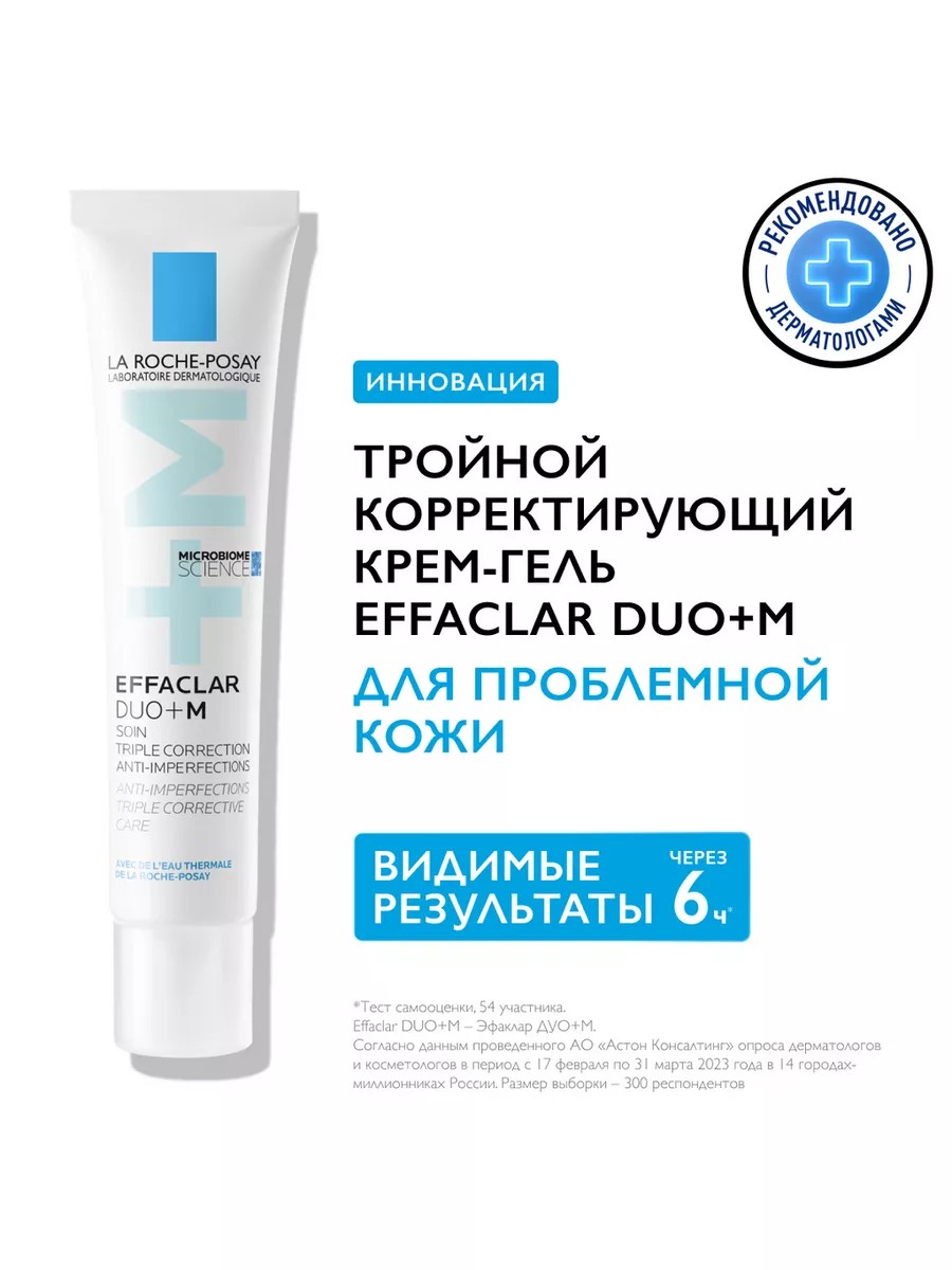 Effaclar Duo+M Triple Corrective Cream-Gel for Problem Skin reduces visible imperfections, blackheads, and post-acne marks. Prevents the recurrence of imperfections and prevents the appearance of residual traces of imperfections in the form of red and dark spots.