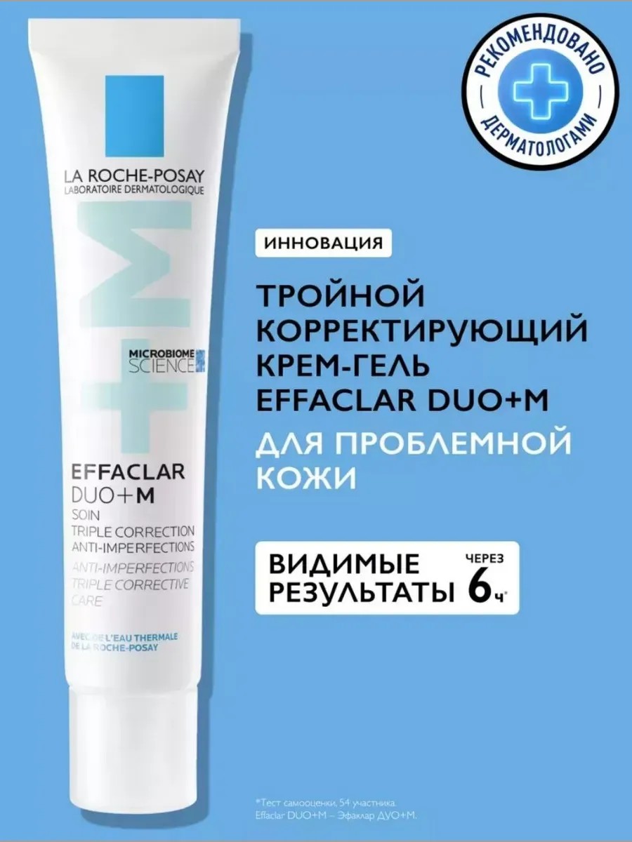 Clinical evaluation, 45 participants. Clinical evaluation, 42 participants. You can also find this product by the following queries: duo m; duo+; concealer; face concealer; acne concealer; duo m; emollient; French pharmacy cosmetics; dermocosmetics; care for problem skin; anti-acne; for acne, acne marks and post-acne; for blackheads on the face and comedones; Teen cosmetics for acne, pimples, and breakouts; teen cosmetics for oily and problem skin; mattifying day cream; facial peeling; LHA and BHA acids for the face. Effaclar Duo+M