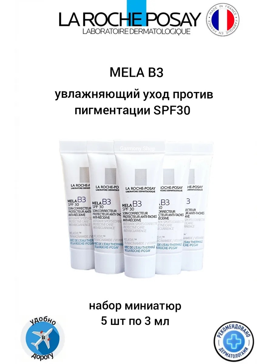 Mela В3 увлажняющий уход против пигментации SPF30, в набор входит 5 тюбиков по 3 мл.