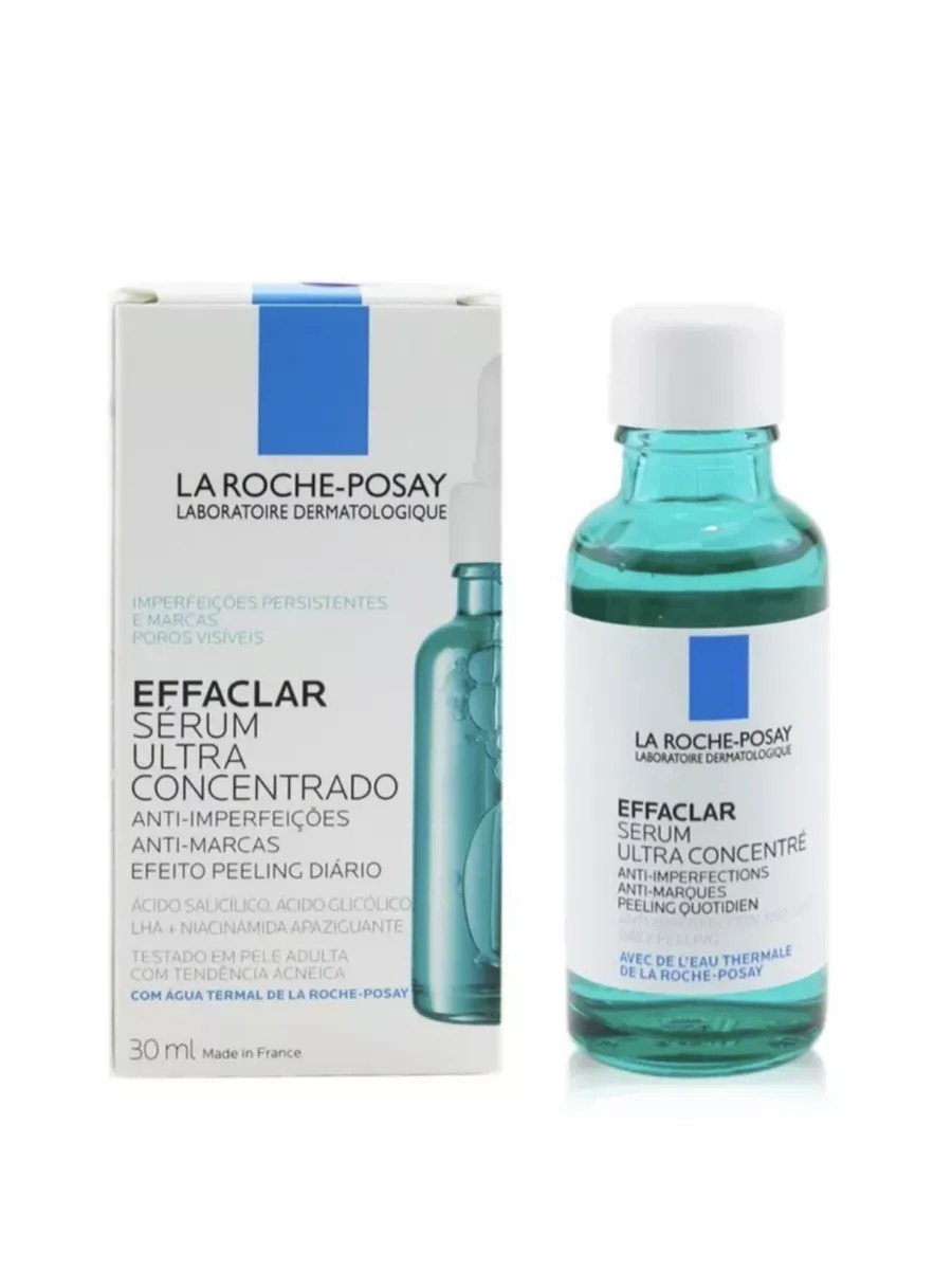 Effaclar Ultra Concentrated Serum contains an intensive complex of Salicylic, Glycolic, and Lipo-Hydroxy Acids, which work synergistically to provide optimal effectiveness against imperfections, blackheads, and post-acne marks. Day after day, the serum visibly renews skin, visibly improving skin texture and tone, while preventing the recurrence of post-acne marks. Niacinamide and La Roche-Posay Thermal Spring Water soothe the skin.