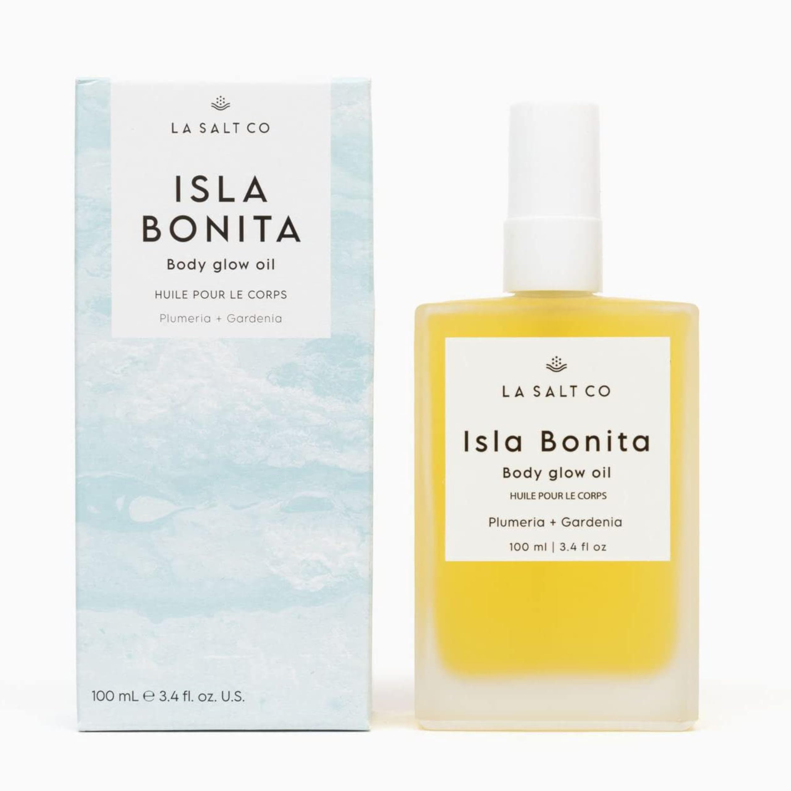 LA SALT CO Isla Bonita Body Glow Oil is loved for its tropical fragrance and softening results