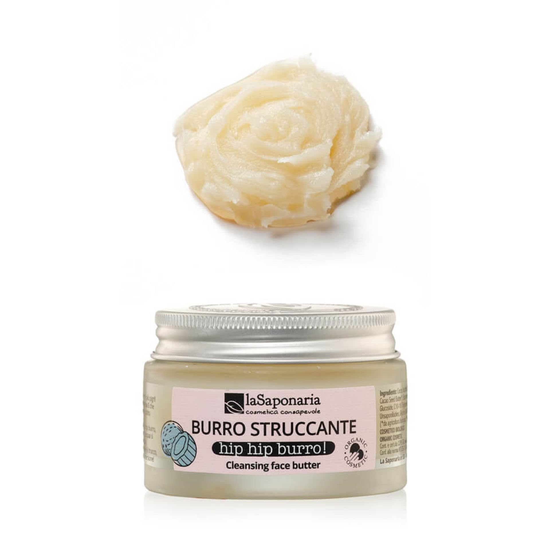 Hip Hip Hip Burro will make even the laziest souls want to remove their makeup: Hip Butter is a concentrated cleansing butter and an organic eye makeup remover. Soft and fragrant, it melts with the warmth of your fingers and is instantly ready to remove even the darkest makeup. A hug that moisturizes your skin while gently but effectively removing even the wildest makeup, including eyeshadow. It is indeed a perfect organic eye makeup remover. Coconut butter and shea butter make this butter nourishing, soothing, and elastic, ideal for dry, sensitive, and mature skin. Coconut oil makes the skin soft and smooth, protecting it from external aggressors. Vitamin E, thanks to its antioxidant power, protects the skin from oxidative stress caused by free radicals. It is contained in a glass jar with an aluminum lid. SAFETY WARNING For external use onlyCoconut oil makes skin soft and smooth, protecting it from external aggressors. Vitamin E, thanks to its antioxidant properties, protects skin from the oxidative stress of free radicals. Coconut butter and shea butter make this butter nourishing, soothing, and elastic, ideal for dry, sensitive, and mature skin. It's a perfect organic eye makeup remover. A gentle embrace that hydrates your skin while delicately yet effectively removing even the most stubborn makeup. Soft and fragrant, it melts with the warmth of your fingers and is instantly ready to remove even the darkest makeup. Hip Hip Hip Burro will make even the laziest souls want to remove their makeup: Hip Butter is a concentrated cleansing butter and an organic eye makeup remover.La Saponaria Hip Hip Hip Beurre! Beurre démaquillant concentré, avec beurre de karité, huile de coco et vitamine E, 45 mlDESCRIPTION DU PRODUIT DESCRIPTION DU PRODUIT Hip Hip Hip Burro fera venir envie de se démaquiller même aux âmes les plus paresseuses : Hip Beurre est un beurre démaquillant concentré et un démaquillant yeux bio. Doux et parfumé, il se dissout avec la chaleur de vos doigts et est immédiatement prêt à enlever même le maquillage le plus sombre. Un câlin qui hydrate votre peau tout en enlevant délicatement mais efficacement le maquillage le plus fou, y compris le maquillage. C'est en effet un parfait démaquillant yeux bio. Le beurre de coco et le beurre de karité rendent ce beurre nourrissant, apaisant et élastique, idéal pour les peaux sèches, sensibles et matures. L'huile de coco rend la peau douce et lisse, la protégeant des agents extérieurs. La vitamine E, grâce à son pouvoir oxydant, préserve la peau du stress oxydatif des radicaux libres. Il est contenu dans un bocal en verre avec bouchon en aluminium. AVERTISSEMENT DE SÉCURITÉ Usage extérieur uniquementL'huile de coco rend la peau douce et lisse, la protégeant des agents extérieurs. La vitamine E, grâce à son pouvoir oxydant, préserve la peau du stress oxydatif des radicaux libres. Le beurre de coco et le beurre de karité rendent ce beurre nourrissant, apaisant et élastique, idéal pour les peaux sèches, sensibles et matures. C'est en effet un parfait démaquillant yeux bio. Un câlin qui hydrate votre peau tout en enlevant délicatement mais efficacement le maquillage le plus fou, y compris le maquillage. Doux et parfumé, il se dissout avec la chaleur de vos doigts et est immédiatement prêt à enlever même le maquillage le plus sombre. Hip Hip Hip Burro fera venir envie de se démaquiller même aux âmes les plus paresseuses : Hip Beurre est un beurre démaquillant concentré et un démaquillant yeux bio.