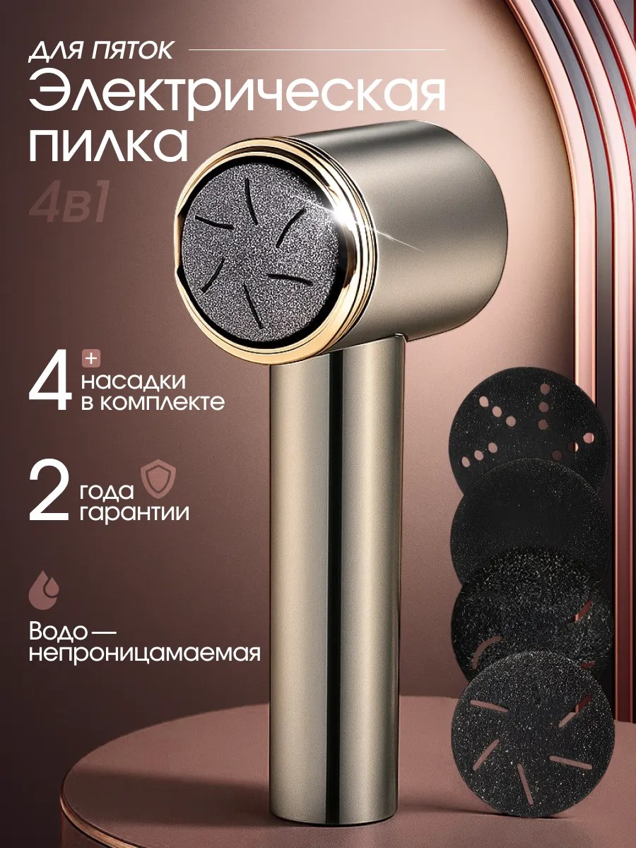 Это электрическая пилка для пяток и ног, отличающаяся удобной формой и стильным дизайном. Комплектация: пилка, 4 насадки, щетка для чистки, кабель USB. Имеется гарантия 6 месяцев.