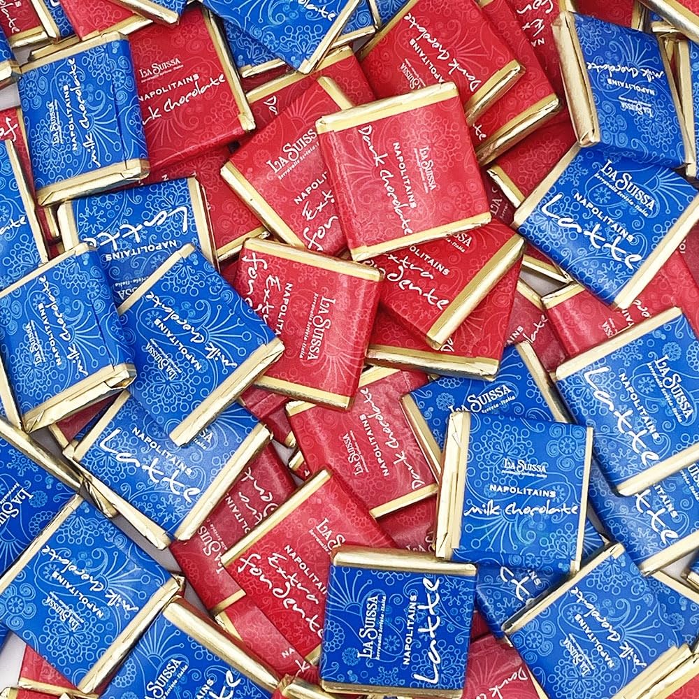 La Suissa Assorted Neapolitan Chocolates. 1 kg pack (approximately 180 chocolates) in the following types: milk chocolate, extra dark chocolate 52 INSTRUCTIONS FOR USE Enjoy as a snack or dessert SAFETY WARNING No warning See more