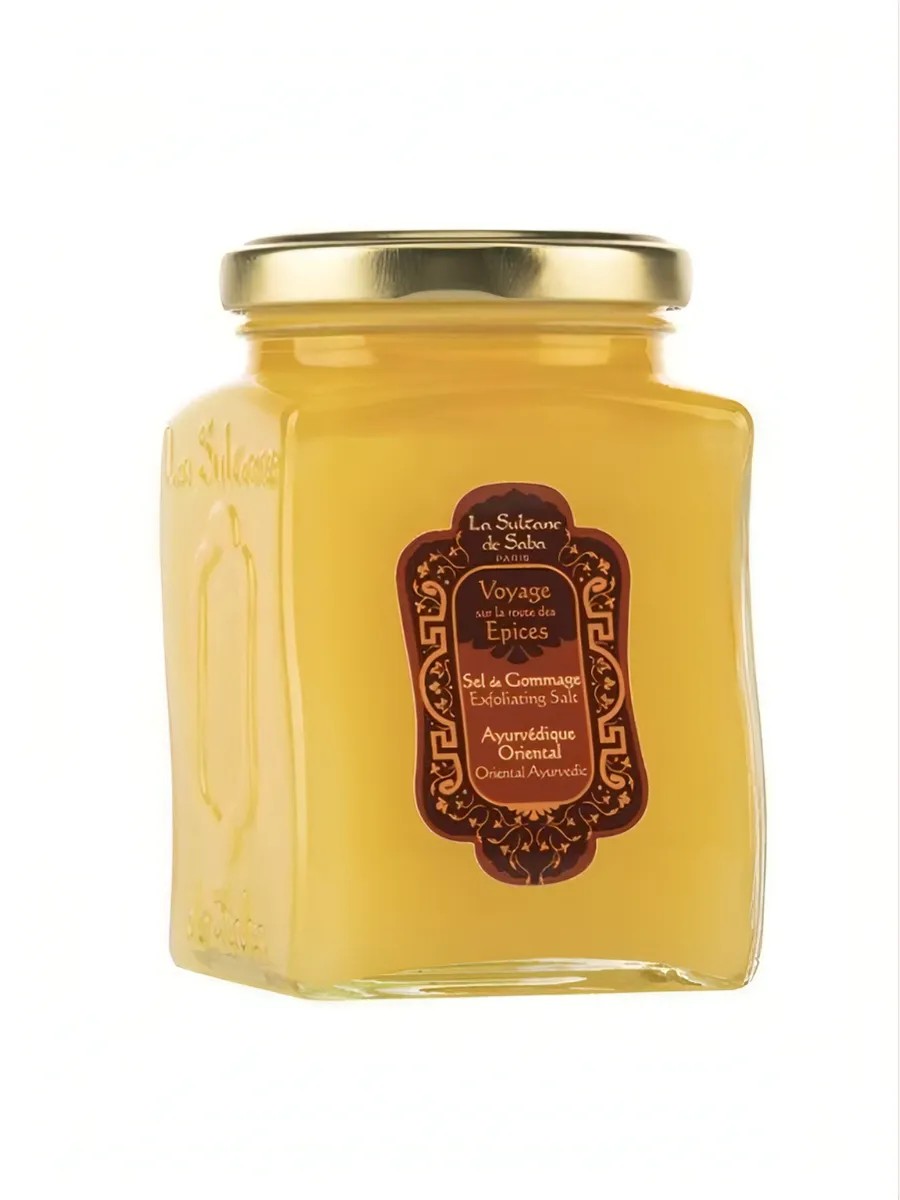 La Sultane de Saba Exfoliating Salts Ayurvedic Oriental 300g. Softens skin, leaving it smooth and radiant. Prickly pear oil has an intense rejuvenating effect. It has a pleasant, relaxing Ayurveda aroma with notes of amber, vanilla, and patchouli. How to use La Sultane de Saba body peeling: Apply the product to damp skin using massaging circular motions. Massage in, paying particular attention to problem areas, and rinse with warm water. The results will pleasantly surprise even the most demanding person. Cleansing is carried out as gently and carefully as possible, preventing microtrauma. This product is made from natural ingredients, so it does not cause allergic reactions and can be used on all skin types. Salt peels are not used for cleansing the face or for cleansing skin with abrasions, fresh scratches, or irritations. Volume: 300 ml. La Sultane de Saba. Original.