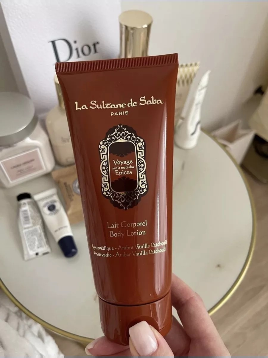 Молочко Body Lotion "Ayurvedic" с насыщенной текстурой LA SULTAN DE SABA из коллекции "Путешествие на Восток" питает и восстанавливает кожу, защищая ее от сухости.Уже после первого применения кожа становится мягкой и бархатистой.Молочко дарит несравненный комфорт и обладает опьяняющим ароматом специй: пачули, амбры, ванили, имбиря..Все необходимое для поддержания кожи в идеальном состоянии содержится в молочке для тела La Sultane de Saba. Идеальное средство для ежедневного применения, состоящее из масла сладкого миндаля, арганы и масла карите, обладает легкой, но насыщенной текстурой, быстро впитывается, не оставляя следов. Молочко для тела обладает укрепляющими свойствами, обеспечивает тотальное увлажнение, которое сохраняется 24 часа, придавая ощущения комфорта и обволакивая изысканными ароматами. Кожа приобретает здоровый вид, становится шелковистой и более упругой.