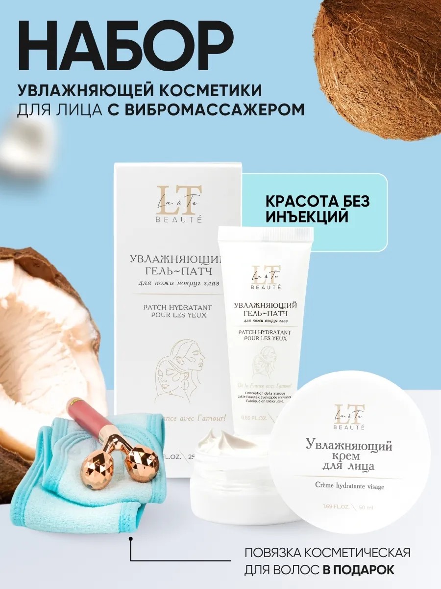 | Полное наименование товара | Набор для лица: гель-патч, крем, повязка, массажер |