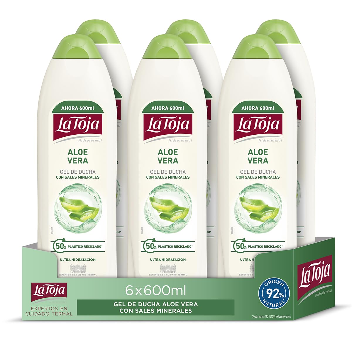 La Toja Gel douche Aloe Vera, pack de 6 x 600 ml (3600 ml), soin optimal pour tous, peau douce, élastique et lisse