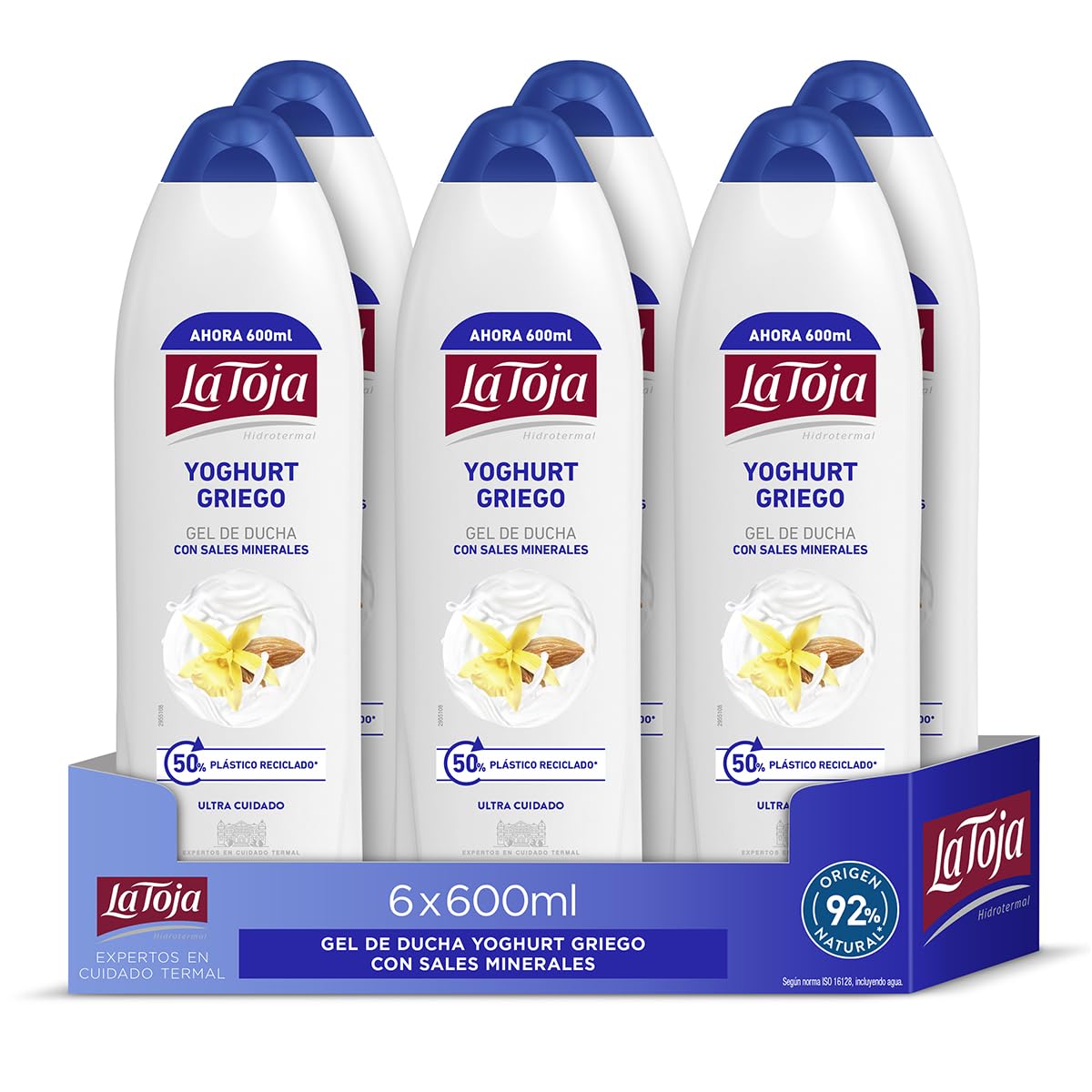 La Toja Yoghurt Gel douche grec pack de 600 ml (3600 ml) pour une peau soignée, parfum d'amande, soin et douceur