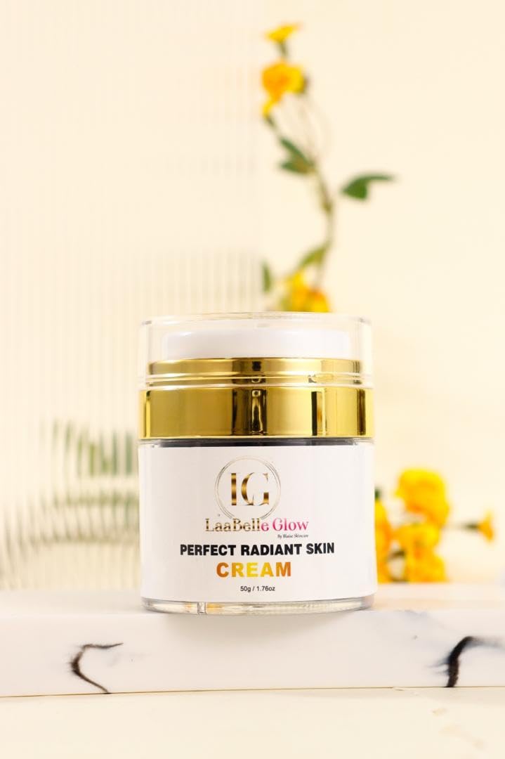 PREMIUM PACKAGING: Comes in a luxurious white jar with gold accents and secure lid design for optimal product preservation. GENTLE APPLICATION: Light, non-greasy texture spreads smoothly across skin, making it perfect for all skin types. DAILY USE: Ideal for morning and evening skincare routines, this cream absorbs quickly and works effectively as part of a complete beauty regimen. RADIANT COMPLEXION: Specially formulated facial moisturizer helps achieve a luminous, glowing appearance while hydrating the skin. LUXURIOUS FORMULA: Perfect Radiant Skin Cream features a premium gold-infused formula in an elegant 50g 1.76oz jar with sophisticated gold and white packaging.