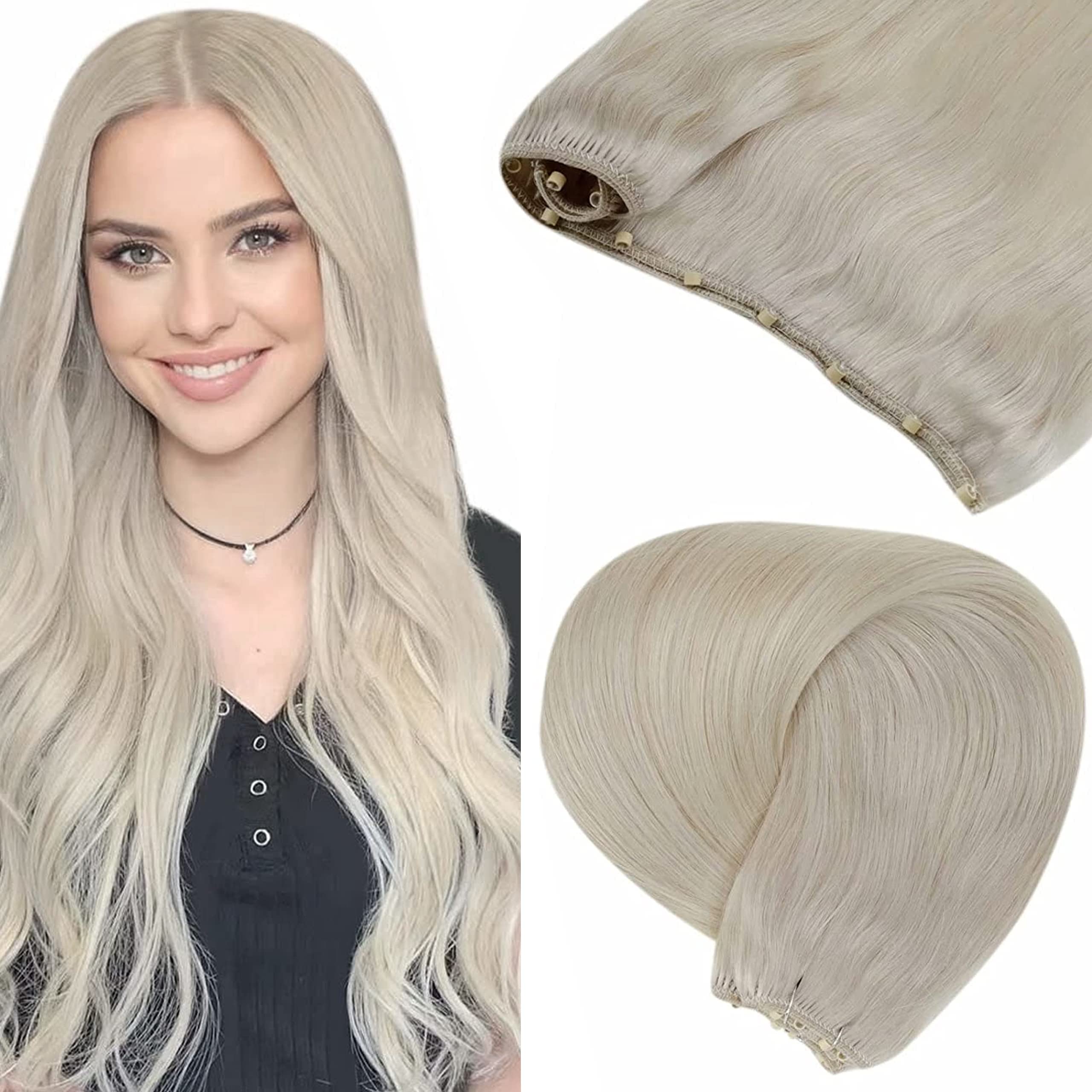 LaaVoo Blond Micro Tressen Extensions Echthaar Glatt 50g Unsichtbar Micro Weft Haarverlängerung Echthaar 45cm Platinblond 60 EZE Micro Bead Extensions Remy Human Hair 12" Width 45cm-50g 2.21 60