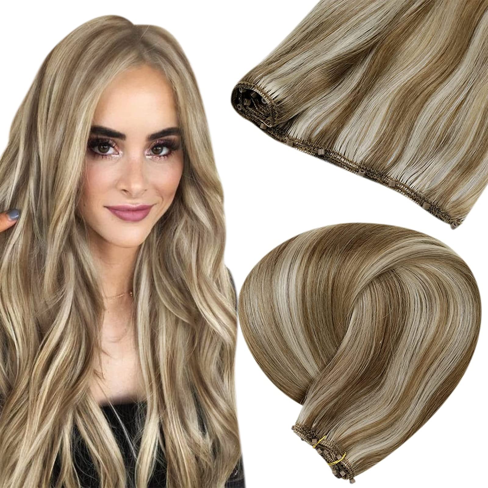 LaaVoo Micro Weft Extensions Echthaar Braun Blond Highlighted 40cm EZ Weft Microbeads Haarverlängerung Echthaar 50g Remy Human Hair #P8/60 Hellbraun Highlighted Platinblond 12Zoll Width 40cm-50g 2.33#p8/60