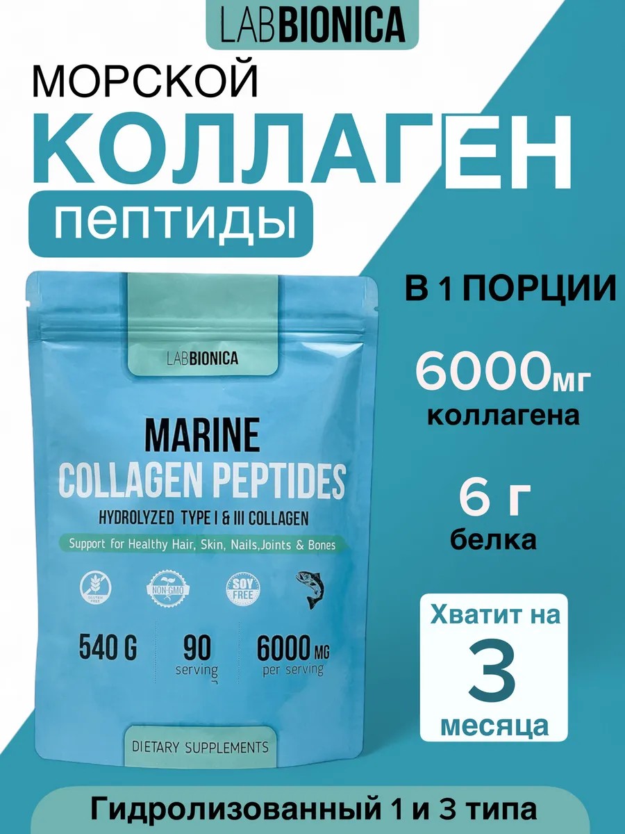 Marine collagen peptides Коллаген морской гидролизованный 1 и 3 типа в порошке натуральный без вкусовых добавок. В 1 порции содержится: коллаген рыбный 6000 мг. В упаковке 90 порций. Пептиды рыбного коллагена способствуют: Коллаген морской гидролизованный с витамином С - это уникальный продукт, который поможет вам сохранить молодость и красоту вашей кожи. Наш колаген порошок содержит высококачественный коллаген, полученный из морских рыб.