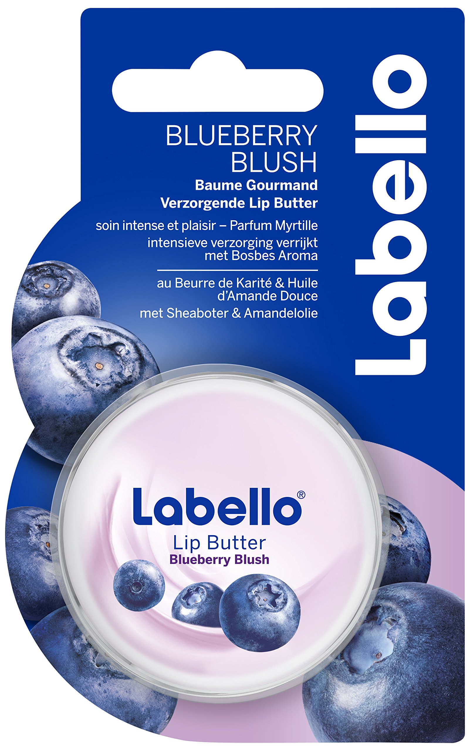 Do you need a pampering treatment for your dry lips? Labello Blueberry Blush Gourmet Balm is the solution to intensely nourish and comfort your lips: its formula enriched with Shea Butter and Sweet Almond Oil provides intense and long-lasting hydration with a subtle blueberry scent. For irresistibly soft and supple lips. Labello Blueberry Blush Gourmet Balm, a fruity and velvety fragrance to care for the lips. DIRECTIONS FOR USE Apply a thin layer to the lips SAFETY WARNING May irritate sensitive skin. Test on a small area before use. The result: incredibly soft lips. Provides 12 hours of hydration, combined with a delicious Blueberry scent. Enriched with Shea Butter and Sweet Almond Oil. Enjoy a treatment that melts into your lips. Vous avez besoin d'un soin cocooning pour vos lèvres desséchées ? Le Baume Gourmand Labello Blueberry Blush est la solution pour nourrir intensément et réconforter vos lèvres : sa formule enrichie en Beurre de Karité et Huile d'Amande Douce leur procure une hydratation intense et durable au subtile parfum de myrtille. Pour des lèvres irrésistiblement douces et souples. Labello Baume Gourmand Blueberry Blush, une fragrance de soin fruitée et veloutée pour prendre soin des lèvres. MODE D'EMPLOI Appliquer une fine couche sur les lèvres AVERTISSEMENT DE SÛRETÉ Peut irriter la peau sensible. Faire un test sur une petite zone avant utilisation. Résultat : des lèvres incroyablement douces. Offre 12 heures d'hydratation, combinées à un délicieux parfum de Myrtille. Enrichi en Beurre de Karité et Huile d'Amande Douce. Appréciez un soin qui fond sur vos lèvres.