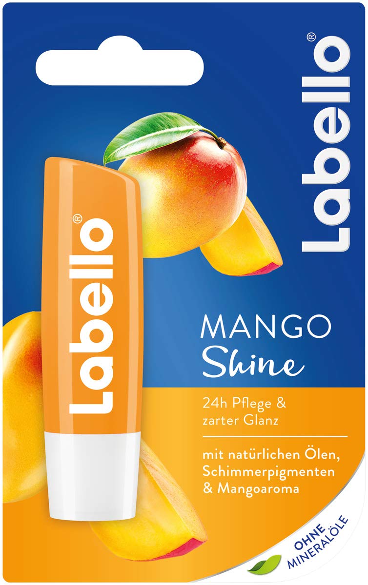 Labello LABELLO Mango Shine Lip Balm with Delicate Shine and Shimmering Pigments and Mango Aroma Lip Care Without Mineral Oils 4.8 g