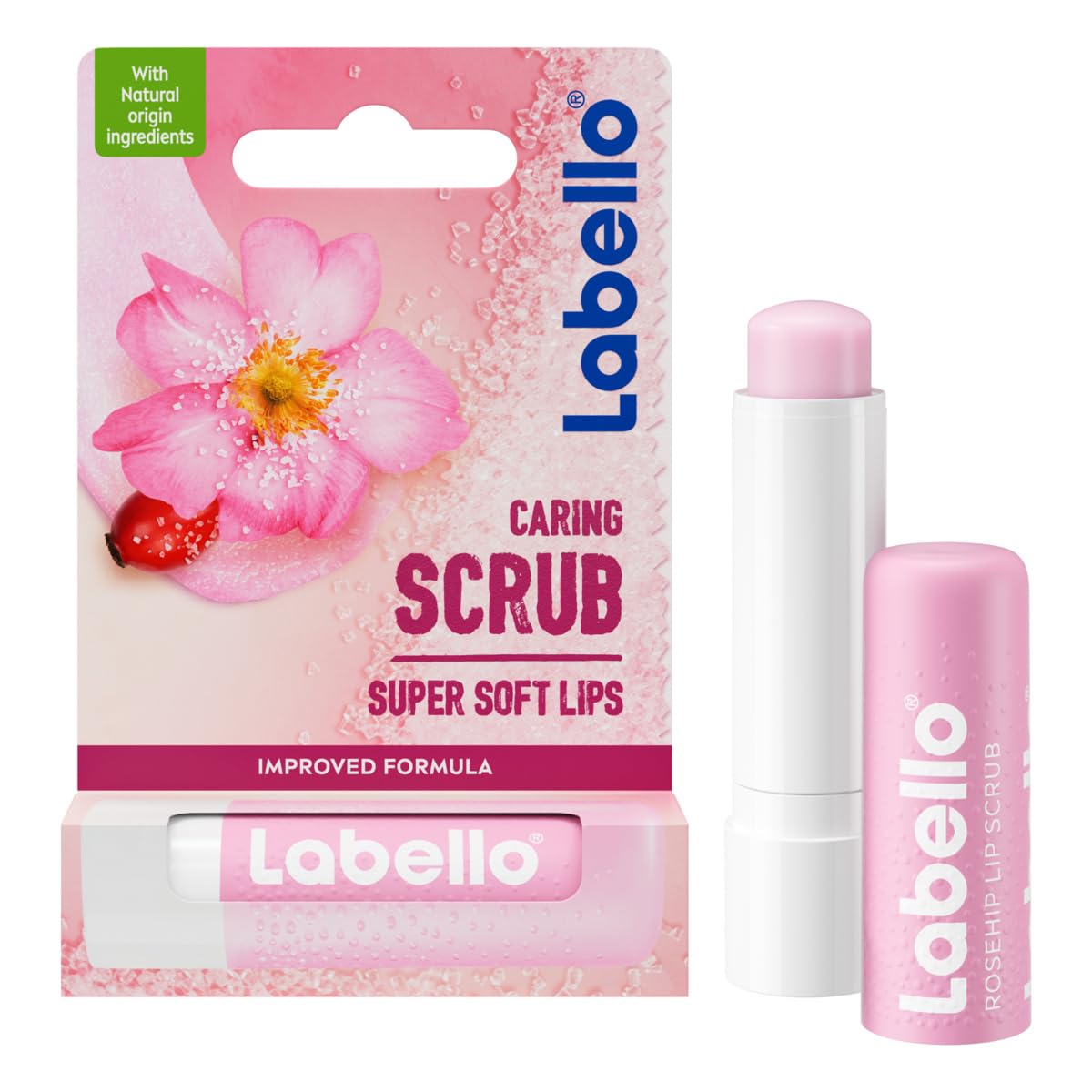 : LABELLO Moisturizing Exfoliating Lip Stick – a lip stick that exfoliates, nourishes, and softens. Say goodbye to chapped lips with this exfoliating treatment from Labello! Thanks to its 2-in-1 formula, it exfoliates and moisturizes your lips in no time. Its texture, with naturally derived sugar particles, gently exfoliates lips without irritating them, removing all traces of dead skin. Furthermore, this lip stick is enriched with natural oils, rosehip oil, and vitamin E, which provide intense hydration and leave your lips feeling silky soft. Application: Apply this stick to your lips daily and massage them together. The sugar particles dissolve naturally, so you don't need to remove them after use. Product Benefits in Detail: Exfoliating lip scrub with naturally derived sugar particles. Enriched with rosehip oil and vitamin E. Intensely nourishes lips. Quantity: 1 x 5.5 ml. Directions for Use: Apply this lip scrub to your lips daily and massage gently. The sugar particles will dissolve naturally.