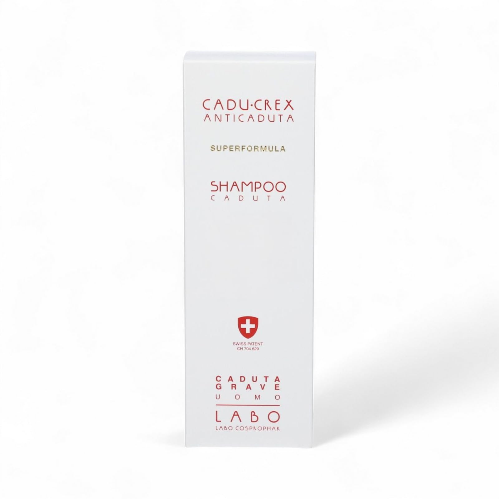 Compatible with a complete anti-hair loss routine including ampoules and supplements. Size: 150 ml bottle. Cadu-Crex shampoo is available in three concentrations: initial hair loss, heavy hair loss, and severe hair loss, to address the intensity of the problem the user wishes to treat. The range is differentiated into men's and women's versions, each with targeted ingredients: Men's version: includes Serenoa Repens extract to combat androgenetic factors. Women's version: enriched with biotin, Pueraria Mirifica Root Extract, hydrolyzed keratin, and resveratrol to support the health and strength of women's hair. Cadu-Crex Anti-Hair Loss SuperFormula Shampoo is a cleansing aid specifically designed for hair prone to falling out: it not only cleanses but also supports the scalp and follicles with advanced functional ingredients.