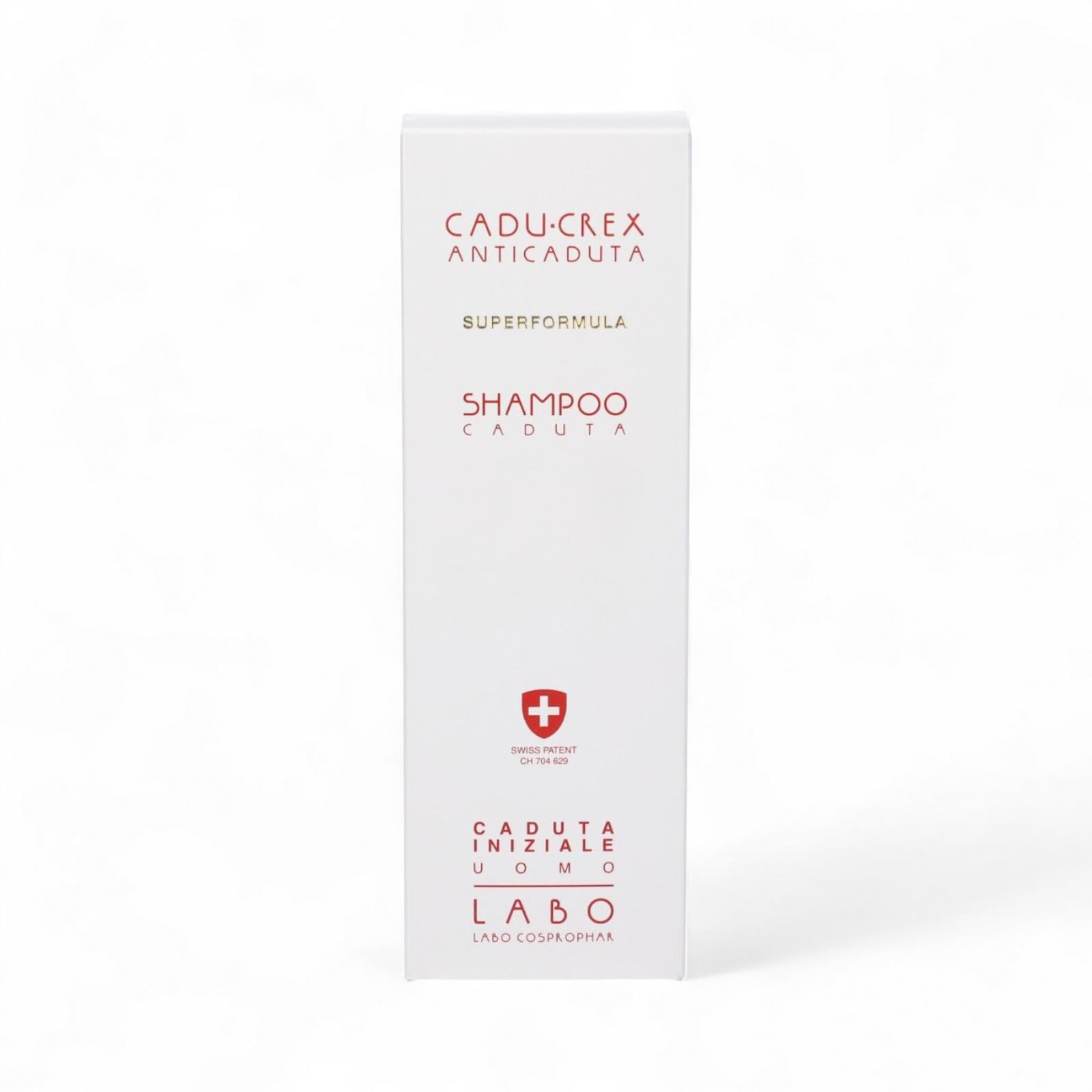 Compatible with a complete anti-hair loss routine including ampoules and supplements. Size: 150 ml bottle. Cadu-Crex shampoo is available in three concentrations: initial hair loss, heavy hair loss, and severe hair loss, to address the intensity of the problem the user wishes to treat. The range is differentiated into men's and women's versions, each with targeted ingredients: Men's version: includes Serenoa Repens extract to combat androgenetic factors. Women's version: enriched with biotin, Pueraria Mirifica Root Extract, hydrolyzed keratin, and resveratrol to support the health and strength of women's hair. Cadu-Crex Anti-Hair Loss SuperFormula Shampoo is a cleansing aid specifically designed for hair prone to falling out: it not only cleanses but also supports the scalp and follicles with advanced functional ingredients.