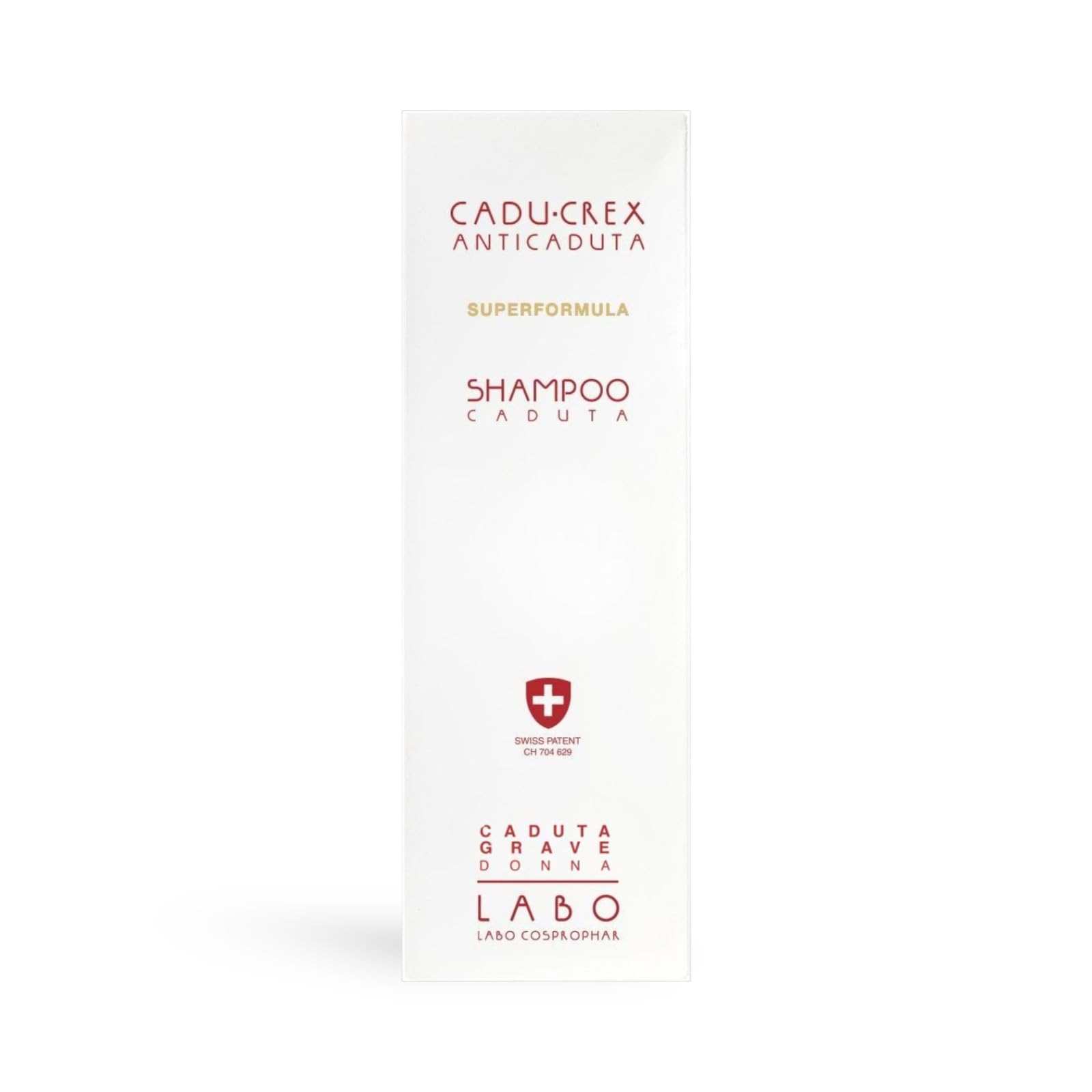 Compatible with a complete anti-hair loss routine including ampoules and supplements. Size: 150 ml bottle. Cadu-Crex shampoo is available in three concentrations: initial hair loss, heavy hair loss, and severe hair loss, to address the intensity of the problem the user wishes to treat. The range is differentiated into men's and women's versions, each with targeted ingredients: Men's version: includes Serenoa Repens extract to combat androgenetic factors. Women's version: enriched with biotin, Pueraria Mirifica Root Extract, hydrolyzed keratin, and resveratrol to support the health and strength of women's hair. Cadu-Crex Anti-Hair Loss SuperFormula Shampoo is a cleansing aid specifically designed for hair prone to falling out: it not only cleanses but also supports the scalp and follicles with advanced functional ingredients.