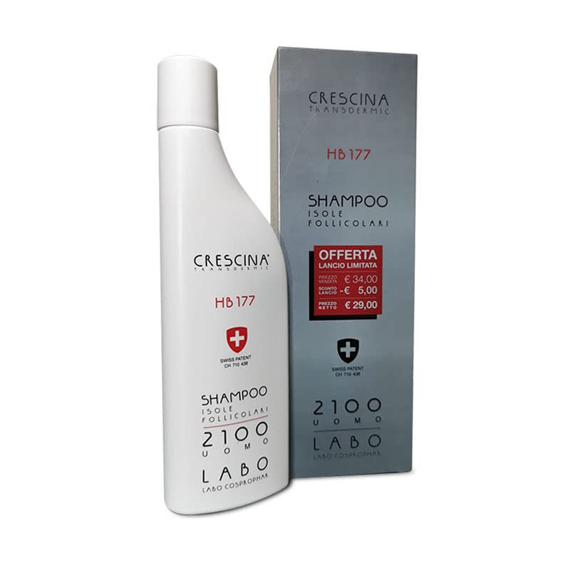 CRESCINA FOLLICULAR ISLANDS TRANSDERMIC HAIR BOOSTER 177 SHAMPOO. Crescina Follicular Islands HB 177 Shampoo is a specific cleanser for thinning hair based on the active ingredients of Crescina Re-Growth HFSC (Swiss Patent N. CH 703 390) and Follicular Islands, PLC12 complexes (12 plate-shaped molecules), Bulge-Stem, Scalp Microbiome Complex and 5 Enhancer. There is also the new Hair Booster 177 (Curcuma Longa Callus Conditioned Media) with ATP plus Ribose complex. The formula is the ideal complement to the topical treatments contained in the Crescina Isole Follicolari HB 177 ampoules. THE FOLLICULAR ISLANDS. Hair shafts, observed at considerable magnification, emerge from the scalp in small clusters that emerge from a single follicular ostium. Each of them represents the visible, superficial part of a more complex structure called the follicular island. It may have 2 to 4 terminal follicles, each of which contains the bulb that produces the terminal hair 1 to 2 fleece follicles, each containing the atrophying bulb. A secondary hair germ may also be present, composed of cells from the dermal papilla which, in contact with the stem cells of the swelling, will give rise to a new hair.It acts on the FOLLICULAR ISLANDS. Components similar to molecules naturally present in the hair system promote rapid hair regeneration NEW! Rapid-Intensive Formula Hair Booster Treatment - Transdermal Technology with Hair Booster 177. HAIR THINNING and LOSS can have various physiological causes such as stress, seasonal change, poor diet, aging. The Crescina Transdermic HB 177 formulation acts inside the hair follicle, where the cells responsible for initiating new hair life cycles are stored, physiologically and synergistically promoting hair growth. In specific formulas for Men and Women, it is available in different dosages for initial, medium and advanced thinning: 1700 - 1900 - 2100. Specific shampoo for thinning hair. Helps rapid physiological hair growth. Rapid-intensive formula with transdermal technology. With Hair Booster 177 to promote physiological hair growth. SHAMPOOING CRESCINA FOLLICULAR ISLANDS TRANSDERMIC HAIR BOOSTER 177. Le Shampooing Crescina Follicular Islands HB 177 est un nettoyant spécifique pour les cheveux clairsemés à base des principes actifs de Crescina Re-Growth HFSC (Brevet Suisse N. CH 703 390) et Follicular Islands, de complexes PLC12 (12 molécules en forme de plaque), Bulge-Stem, Scalp Microbiome Complex et 5 Enhancer. Il y a aussi le nouveau Hair Booster 177 (Curcuma Longa Callus Conditioned Media) avec le complexe ATP plus Ribose. La formule est le complément idéal des traitements topiques contenus dans les ampoules Crescina Isole Follicolari HB 177. LES ÎLES FOLLICULAIRES. Les tiges pileuses, observées à un grossissement considérable, émergent du cuir chevelu en petites grappes qui émergent d'un seul ostium folliculaire. Chacun d'eux représente la partie visible et superficielle d'une structure plus complexe appelée l'île folliculaire. Il peut avoir de 2 à 4 follicules terminaux dont chacun contient le bulbe qui produit le poil terminal 1 à 2 follicules de toison contenant chacun le bulbe en voie d'atrophie. Un germe pileux secondaire peut également être présent, composé des cellules de la papille dermique qui, au contact des cellules souches de la tuméfaction, va donner naissance à un nouveau cheveu.Il agit sur les ÎLES FOLLICULAIRES. Des composants similaires aux molécules naturellement présentes dans le système capillaire favorisent une régénération rapide des cheveux NOUVEAU ! Rapid-Intensive Formula Hair Booster Treatment - Technologie transdermique avec Hair Booster 177. L'APPARISSEMENT et LA CHUTE DES CHEVEUX peuvent avoir diverses causes physiologiques telles que le stress, le changement de saison, une mauvaise alimentation, le vieillissement. La formulation Crescina Transdermic HB 177 agit à l'intérieur du follicule pileux, où sont stockées les cellules responsables de l'initiation des nouveaux cycles de vie des cheveux, favorisant physiologiquement et de manière synergique la croissance des cheveux. Dans des formules spécifiques pour Homme et Femme, il est disponible en différents dosages pour un amincissement initial, moyen et avancé : 1700 - 1900 - 2100. Shampooing spécifique pour cheveux clairsemés. Aide à la croissance physiologique rapide des cheveux. Formule rapide-intensive avec technologie transdermique. Avec Hair Booster 177 pour favoriser la croissance physiologique des cheveux.
