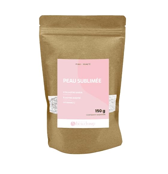 THE HISTORY OF THE BEAUCHAMP LABORATORY: Our products are developed in France by a team of scientists. We contribute to your well-being by offering high-quality, naturally sourced products. Our close collaborations with numerous research teams allow us to offer you high-quality products combined with advanced scientific support. DIRECTIONS FOR USE: Take 1 to 2 heaped teaspoons per day. COMPOSITION. This product is composed of marine collagen, marine elastin, and vitamin C. WHAT ARE THE BENEFITS OF PEAU SUBLIMEE? This nutricosmetic product helps maintain youthful, radiant, and luminous skin. WHAT IS PEAU SUBLIMEE? Peau sublimée is composed of type I marine collagen, the same collagen found in the skin, marine elastin characterized by its purity, and antioxidant vitamin C.L'HISTOIRE DU LABORATOIRE BEAUCHAMP : Nos produits sont développés en France par une équipe de scientifiques. Nous contribuons à votre bien-être en proposant des produits de qualité et d'origine naturelle. Nos collaborations étroites avec de nombreuses équipes de recherche nous permettent de vous proposer des références de qualité associées à un accompagnement scientifique pointu. CONSEILS D'UTILISATION : Prendre 1 à 2 cuillères à café bombées par jour. COMPOSITION. Ce produit est composé de collagène marin, d'élastine marine et de vitamine C. QUELS SONT LES BIENFAITS DE PEAU SUBLIMEE ? Ce produit nutricosmétique contribue à conserver une peau jeune, éclatante et lumineuse. QU'EST-CE QUE PEAU SUBLIMEE ? Peau sublimée se compose de collagène marin de type I, le même que celui que l'on trouve dans la peau, d'élastine marine caractérisée par sa pureté, et de vitamine C antioxydante.