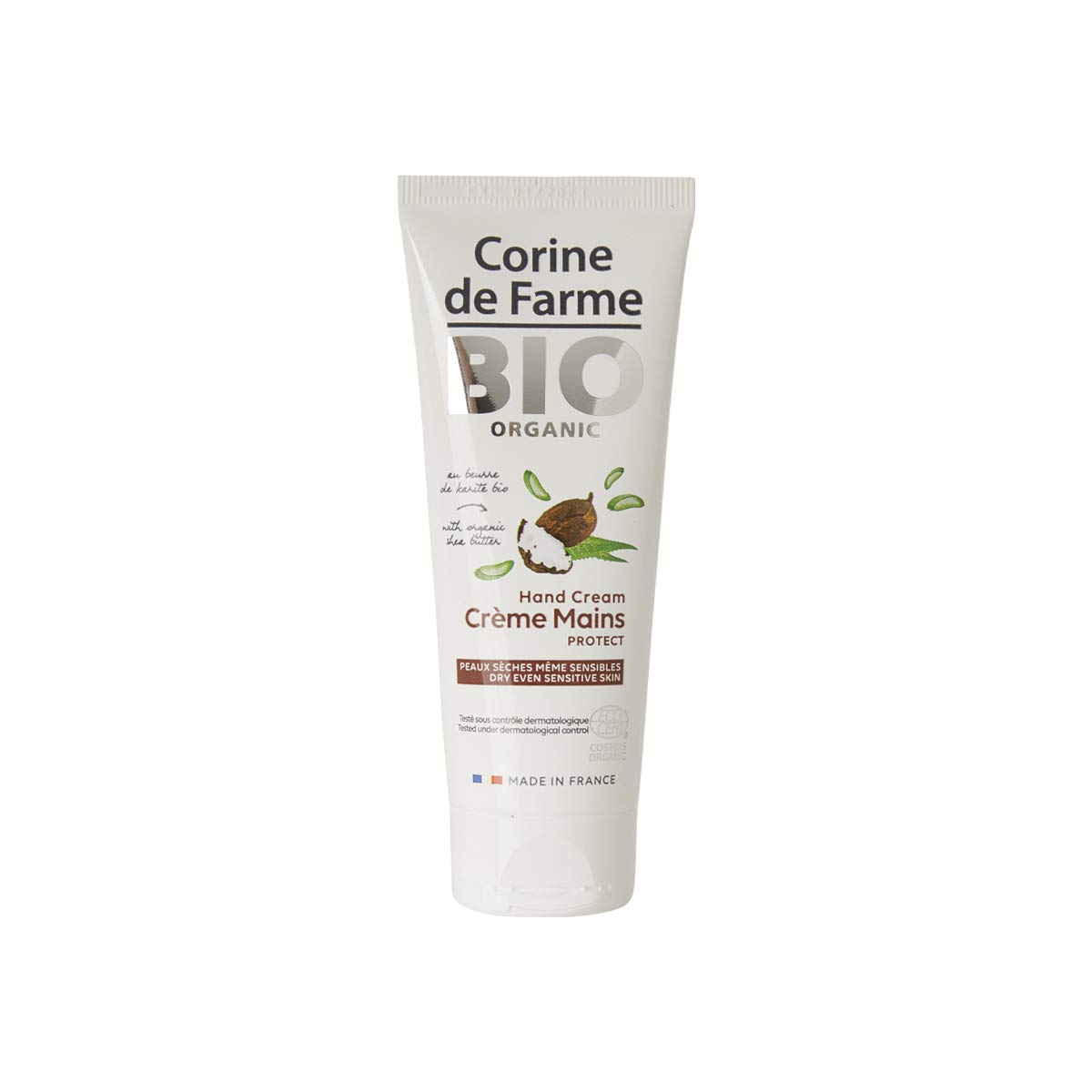At Corine de Farme, our mission is to empower all women to care for themselves and their families with high-quality, trustworthy products. Our skincare products, made with natural or certified organic ingredients, are suitable for all skin types, even the most sensitive. It all began with Paul Duprez, who in 1969 partnered with a homeopathic pharmacist. Together, they developed the first herbal decoctions in the laboratory of a small pharmacy, which led to the creation of natural skincare and cleansing products for babies' sensitive skin. Three generations later, Corine de Farme now offers a range of skincare and beauty products formulated with over 95 naturally derived or Ecocert-certified organic ingredients, dedicated to the sensitive skin of the whole family. Entirely made in France in our production workshops, our products are developed and produced in keeping with our family know-how. Certified organic hand cream, nourishes and repairs dry hands. Soothes tightness and leaves hands soft and moisturized. INGREDIENTS INGREDIENTS: Aqua, Glycerin, Caprylic Capric Triglyceride, C10-18 Triglycerides, Polyglyceryl-3 Distearate, Cetearyl Alcohol, Butyrospermum Parkii Butter , Glyceryl Stearate SE, Parfum, Sodium Levulinate, Xanthan Gum, Glyceryl Stearate Citrate, Glyceryl Caprylate, Sodium Stearoyl Glutamate, Citric Acid, Sodium Benzoate, Aloe Barbadensis Leaf Juice Powder , Linalool, Helianthus Annuus Seed Oil, Tocopherol, Sodium Hydroxide. Ingredients from Organic Farming, 20 of the total ingredients are from Organic Farming, 99 of the total is of natural origin, Cosmos Organic certified by Ecocert, Greenlife according to the standard Cosmos100 Made in France: With its three production workshops and integrated research laboratory, Corine de Farme is a flagship of French cosmetics. This family business, based in northern France, innovates and invests in local production, making it 100 Made in France. For all skin types: We have carefully formulated our cream, excluding controversial substances such as parabens and sulfates. It is also hypoallergenic and fragrance-free. Organic and natural: This skincare product is formulated with 99 naturally derived ingredients, including shea butter and organic aloe vera. It is certified organic by the ECOCERT label. Immediate comfort: Our cream has a moisturizing and repairing effect on hands from the first application. Afterward, your hands are lastingly protected from tightness. Repairs damaged hands: Our cream is specially designed for dry skin. Enriched with Aloe Vera and organic Shea Butter, it moisturizes and soothes from the first application.Corine de Farme - Crème Réparatrice Mains BIO - Crème hydratante Tous Types de Peau au Karité et Aloe Vera - Apaise et Protège - Hypoallergénique, Sans Parfum - Certifié Bio ECOCERT - 75 mlDESCRIPTION DU PRODUIT DESCRIPTION DU PRODUIT Chez Corine de Farme, notre mission est de permettre à toutes les femmes de prendre soin d'elles et de leurs familles avec des produits de qualité et de confiance. Nos soins, d'origine naturelle ou certifiés bio, s'adressent à toutes les peaux même les plus sensibles. C'est l'histoire de Paul Duprez qui, en 1969, s'est associé avec un pharmacien homéopathe. Ensemble, ils ont développé les premières décoctions végétales dans le laboratoire d'une petite officine qui donneront naissance aux produits de soin et de toilette d'origine naturelle pour la peau sensible des bébés. Trois générations plus tard, Corine de Farme propose désormais une gamme de soins et de beauté formulés à plus de 95 d'ingrédients d'origine naturelle ou certifiés bio par Ecocert dédiée à la peau sensible de toute la famille. Entièrement, fabriqués en France dans nos ateliers de production, nos soins sont élaborés et produits dans la continuité de notre savoir-faire familial.Crème Mains certifiée BIO, nourrit et répare les mains desséchées . Apaise les sensations de tiraillement et laisse les mains douces et hydratées INGRÉDIENTS INGREDIENTS : Aqua, Glycerin, Caprylic Capric Triglyceride, C10-18 Triglycerides, Polyglyceryl-3 Distearate, Cetearyl Alcohol, Butyrospermum Parkii Butter , Glyceryl Stearate SE, Parfum, Sodium Levulinate, Xanthan Gum, Glyceryl Stearate Citrate, Glyceryl Caprylate, Sodium Stearoyl Glutamate, Citric Acid, Sodium Benzoate, Aloe Barbadensis Leaf Juice Powder , Linalool, Helianthus Annuus Seed Oil, Tocopherol, Sodium Hydroxide Ingrédients issus de l'Agriculutre biologique , 20 du total des ingrédients sont issus de l'Agriculture Biologique , 99 du total est d'origine naturelle, Cosmos Organic certifié par Ecocert, Greenlife selon le référentiel Cosmos100 Made in France : Avec ses 3 ateliers de production et son laboratoire de recherche intégré, Corine de Farme est un fleuron de la cosmétique made in France. Cette entreprise familiale basée dans le nord de la France innove et investit dans la production locale, 100 Made in France. Pour toutes les peaux : Nous avons pris soin de formuler notre crème en excluant les substances controversées comme le Paraben et les Sulfates. De plus, elle est hypoallergénique et sans parfum. Bio et naturel : Ce produit de soins est formulé avec 99 d'ingrédients d'origine naturelle, dont le beurre de karité et l'Aloe Vera biologique. Il est certifié bio par le label ECOCERT. Sensation de confort immédiat : Notre crème a un effet hydratant et réparateur sur les mains dès l'application. Ensuite, vos mains sont protégées durablement des tiraillements. Répare les mains abîmées : Notre crème est spécialement conçue pour la peau sèche. Enrichie en Aloe Vera et en Beurre de Karité bio, elle hydrate et apaise dès l'application.