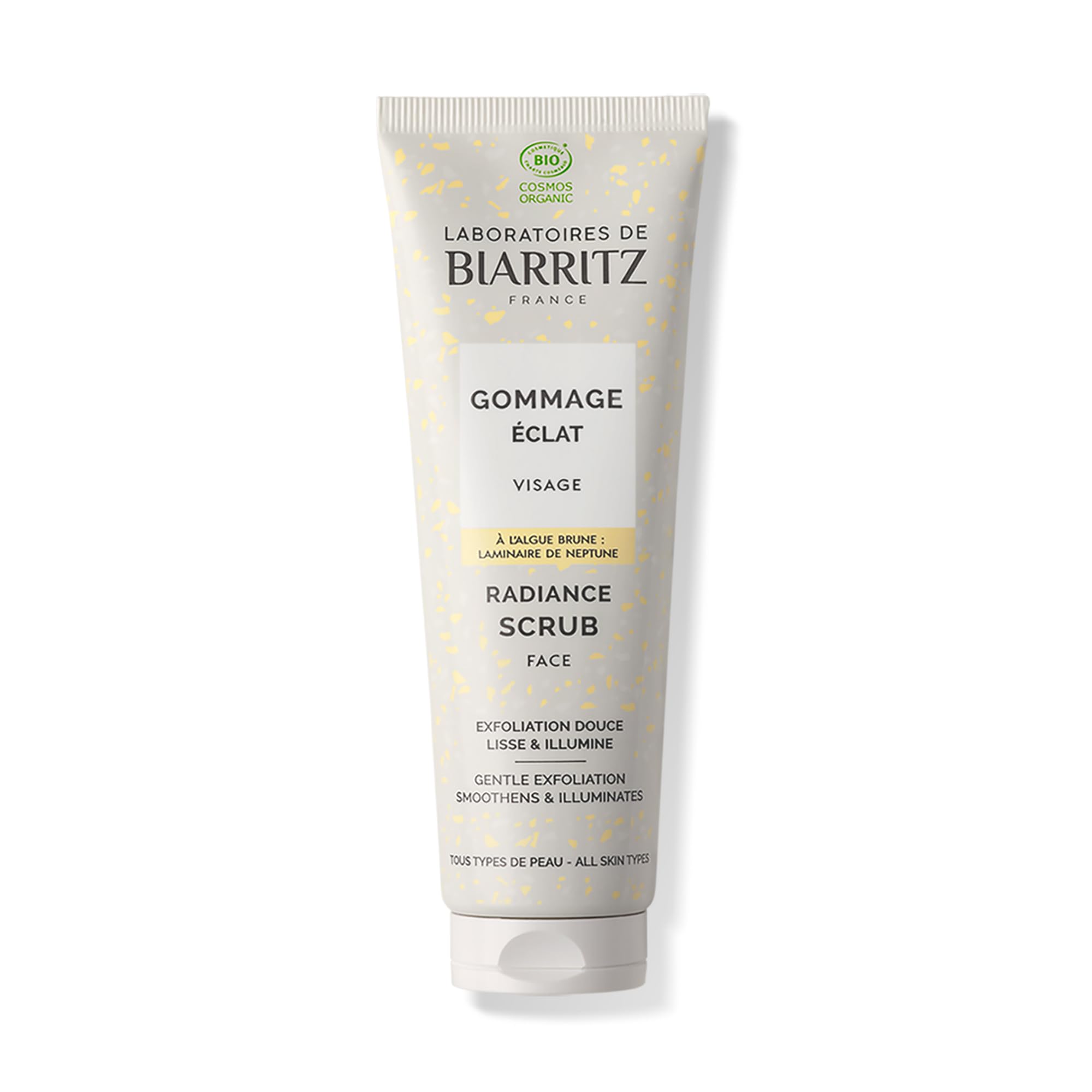 Enriched with moisturizing and soothing active ingredients, the Certified Organic Radiance Facial Scrub gently removes dead skin cells and refines skin texture. It activates cell renewal and leaves the complexion fresh and radiant. Learn more Description The Certified Organic Radiance Facial Scrub is an essential step in a good skincare routine for beautiful skin. It gently removes dead skin cells while refining skin texture. Its natural mechanical exfoliation activates cell renewal and microcirculation. It reveals a fresh and radiant complexion. Skin texture is smoothed, and skin does not feel tight after use. It soothes tightness and revives the skin's radiance thanks to its key active ingredient: Neptune's Kelp (Laminaria saccharina), a brown algae extract. It gently exfoliates thanks to two plant-based exfoliants: coconut powder and castor wax. It hydrates, protects, nourishes, and provides an anti-redness effect thanks to organic aloe vera, organic jojoba oil, and organic alpha-bisabolol. This facial scrub is suitable for all skin types, and its light and delicate fragrance (water lily, cotton flower) provides a truly relaxing experience. We love it because: It gently removes dead skin cells leaves the complexion fresh and radiant is suitable for all skin types is vegan is suitable for pregnant and breastfeeding women comes in a recycled and recyclable tube is safe for use during pregnancy and breastfeeding and has proven effectiveness: 90 ² found their skin texture was smoother 90 ² found their skin did not feel tight after use.² (Consumer test conducted on 26 women over 3 weeks. Under dermatological and ophthalmological control.) Composition INGREDIENTS: Aqua, Caprylic Capric Triglyceride, Glycerin, Hydrogenated Castor Oil, Glyceryl Stearate Citrate, Cetearyl Alcohol, Simmondsia Chinensis Seed Oil , Cocos Nucifera Shell Powder, Pentylene Glycol, Laminaria Saccharina Extract, Aloe Barbadensis Leaf Juice Powder , Bisabolol , Parfum, Sodium Levulinate, Xanthan Gum, Disodium Cocoyl Glutamate, Propanediol, Sodium Anisate, Helianthus Annuus Seed Oil, Tocopherol, Citric Acid, Sodium Cocoyl Glutamate Ingredients from organic farming. 100 of the total ingredients are of natural origin. 55.8 of the total ingredients are from Organic Farming. COSMOS ORGANIC certified by Ecocert Greenlife according to the COSMOS standard. Ingredients: Aqua, Caprylic Capric Triglyceride, Glycerin, Hydrogenated Castor Oil, Glyceryl Stearate Citrate, Cetearyl Alcohol, Simmondsia Chinensis Seed Oil , Cocos Nucifera Shell Powder, Pentylene Glycol, Laminaria Saccharina Extract, Aloe Barbadensis Leaf Juice Powder , Bisabolol , Parfum, Sodium Levulinate, Xanthan Gum, Disodium Cocoyl Glutamate, Propanediol, Sodium Anisate, Helianthus Annuus Seed Oil, Tocopherol, Citric Acid, Sodium Cocoyl Glutamate. Ingredients from Organic Farming. 100 of the total ingredients are of natural origin. 55.8 of the total ingredients are from Organic Farming. Organic, COSMOS ORGANIC certified by Ecocert Greenlife according to the COSMOS standard. P.when('A').execute(function(A) { A.on('a:expander:toggle_description:toggle:collapse', function(data) { window.scroll(0, data.expander. expander[0].offsetTop-100) }) }) Directions for use: 1. Apply a small amount of product to a damp face, avoiding the eye area. 2. Gently massage in circular motions. 3. Rinse thoroughly with clean water. 4. Use once or twice a week. See moreGently removes dead skin cells. It hydrates, protects, nourishes, and reduces redness thanks to organic aloe vera, organic jojoba oil, and organic alpha-bisabolol. It gently exfoliates with two plant-based exfoliants: coconut powder and castor wax. It soothes tightness and restores radiance thanks to its key ingredient: Laminaria saccharina, a brown algae extract. Skin texture is smoothed, and there is no tightness after use. It reveals a fresh and luminous complexion.Description du produit Enrichi en actifs hydratants et apaisants, le Gommage Éclat Visage certifié Bio élimine les cellules mortes en douceur et affine le grain de peau. Il active le renouvellement cellulaire et rend le teint frais et lumineux. En savoir plus Description Le Gommage Éclat Visage certifié Bio est une étape indispensable dans une bonne routine de soins pour avoir une belle peau. Il élimine en douceur les cellules mortes, tout en affinant le grain de peau. Son exfoliation mécanique et naturelle active le renouvellement cellulaire et la microcirculation. Il révèle un teint frais et lumineux. Le grain de peau est lissé, la peau ne tiraille pas après utilisation. Il apaise les tiraillements et ravive l'éclat de la peau grâce à l'actif phare : la Laminaire de Neptune (Laminaria saccharina), un extrait d'algue brune. Il exfolie en douceur grâce à deux exfoliants d'origine végétale : la poudre de noix de coco et de la cire de ricin. Il hydrate, protège, nourrit et procure un effet anti-rougeurs grâce à l'aloe vera Bio, l'huile de jojoba Bio et l'alpha-bisabolol Bio Ce gommage visage est adapté à tous les types de peau et son parfum léger et délicat (nénuphar, fleur de coton) procure un réel instant de détente. On l'aime pour Élimine les cellules mortes tout en douceur Rend le teint frais et lumineux Convient à tous les types de peau Vegan Adapté aux femmes enceintes et allaitantes Packaging en tube recyclé et recyclable Utilisable chez la femme enceinte et allaitante Efficacité prouvée 90 ² trouvent que le grain de peau est lissé 90 ² trouvent que la peau ne tiraille pas après utilisation ² Test d'usage réalisé sur 26 femmes, pendant 3 semaines. Sous contrôle dermatologique et ophtalmologique. Composition INGREDIENTS : Aqua, Caprylic Capric Triglyceride, Glycerin, Hydrogenated Castor Oil, Glyceryl Stearate Citrate, Cetearyl Alcohol, Simmondsia Chinensis Seed Oil , Cocos Nucifera Shell Powder, Pentylene Glycol, Laminaria Saccharina Extract, Aloe Barbadensis Leaf Juice Powder , Bisabolol , Parfum, Sodium Levulin