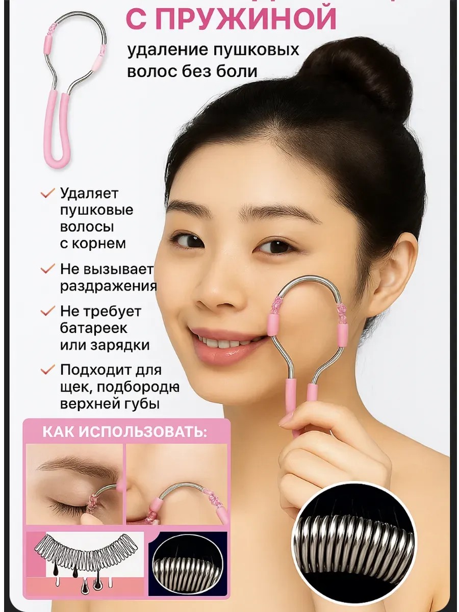Этот удивительный инструмент не только безопасно удаляет пушковые волосы, но и делает это легко и эффективно. Благодаря инновационной конструкции пружинки, процедура становится почти безболезненной и приятной.