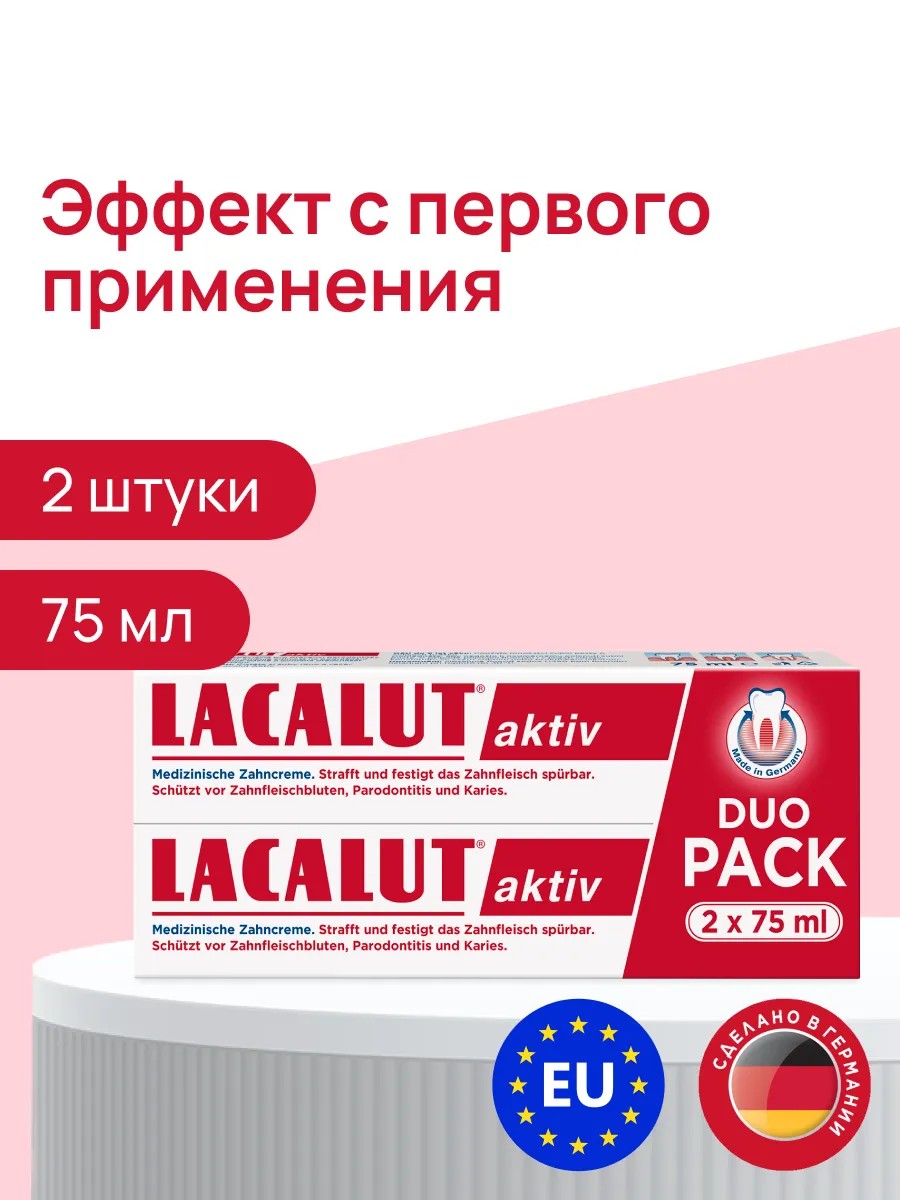 Зубная паста для взрослых Lacalut Aktiv произведена в Германии для европейского рынка, упаковка на немецком языке, лимитированная серия.