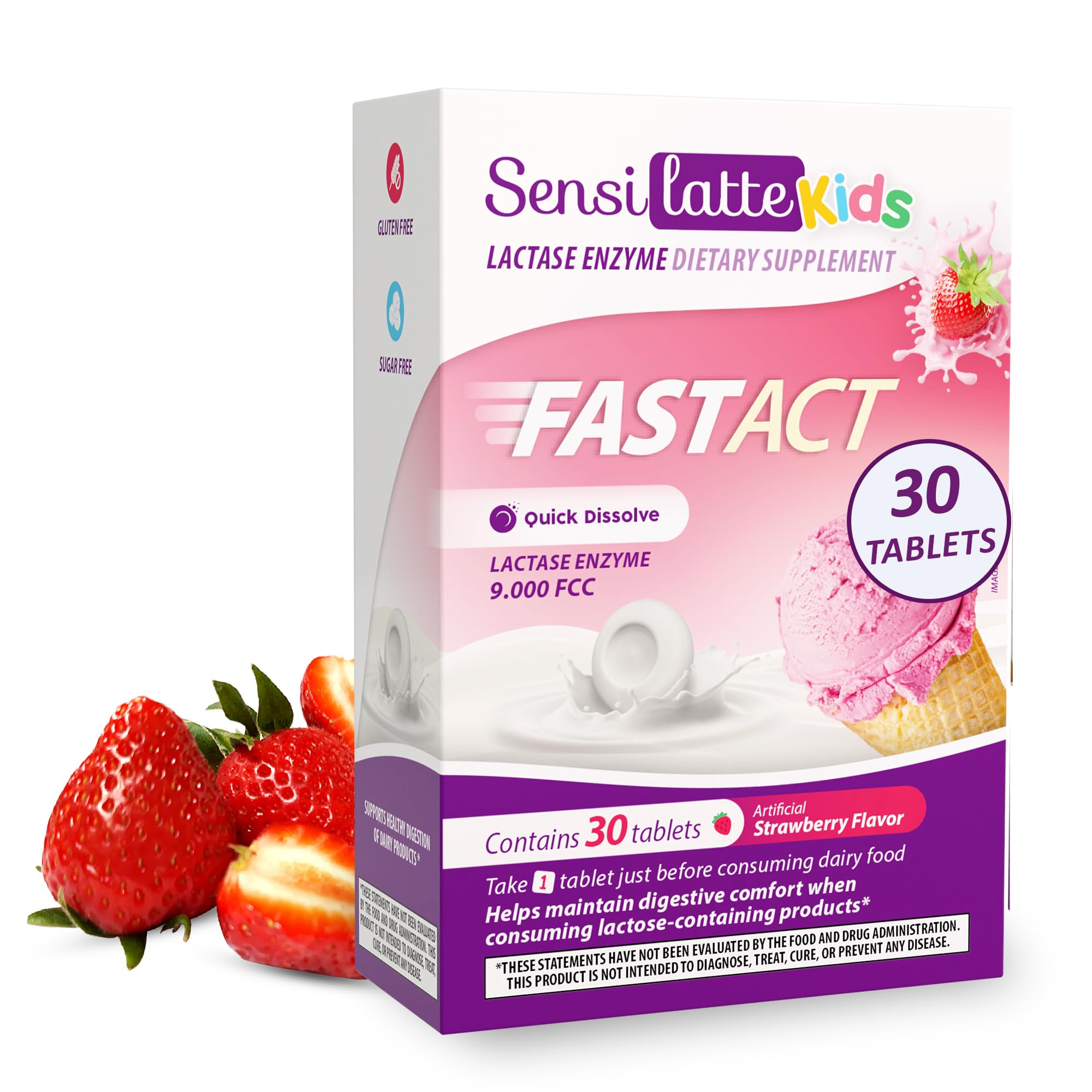 Lactase Enzyme 30 Tablets Strawberry - 9.000 FCC - Sensilatte Quick Dissolution Helps with Digestive Comfort Prati Donaduzzi 30 Count (Pack of 1)
