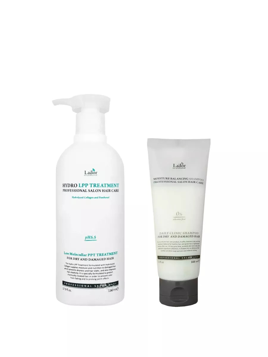 Ладор Eco Hydro LPP Treatment - профессиональная кератиновая восстанавливающая маска;содержащая в составе гидрализованный коллаген. Средство подходит для поврежденных;сухих;ломких и безжизненных волос всех типов. Корейская маска укрепляет структуру волоса;питая волос и разглаживая чешуйки;делает пряди сияющими и послушными;уменьшает спутанность и облегчает расчесывание и укладку. Коллагеновая маска глубоко питает;смягчает непослушные и жесткие волосы;защищает от внешнего химического и термического воздействия. Маска обогащена маслами оливы и жожоба;сохраняет яркость и насыщенность цвета волос. Корейский профессиональный шампунь от Ладор Moisture Balancing Shampoo для ухода за волосами подходит для всех типов волос: сухих;склонных к выпадению;поврежденных;секущихся и ломких волос. Средство нормализует работу сальных желёз и улучшает состояние проблемной;сухой и жирной кожи головы. Увлажняющий бессиликоновый шампунь содержит натуральные экстракты;активирует рост волос;мягко отшелушивает;очищая от загрязнений и омертвевших частиц кожи. Шампунь улучшит состояние волос;поможет в борьбе против выпадения и перхоти благодаря органическому составу. Предотвращает выцветание и вымывание цвета;предотвращает спутывание и электризацию.