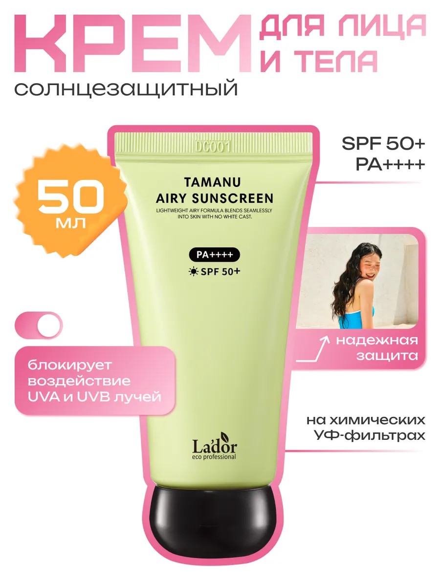 LADOR TAMANU AIRY SUNSCREEN Лёгкий солнцезащитный крем с маслом